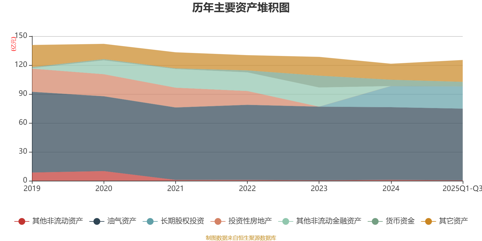 资产重大变化方面,截至2025年三季度末,公司在建工程合计较上年末增加173.06%,占公司总资产比重上升2.89个百分点;油气资产较上年末减少1.41%,占公司总资产比重下降2.76个百分点;预付款项较上年末增加250.03%,占公司总资产比重上升1.97个百分点;货币资金较上年末减少30.08%,占公司总资产比重下降1.74个百分点。