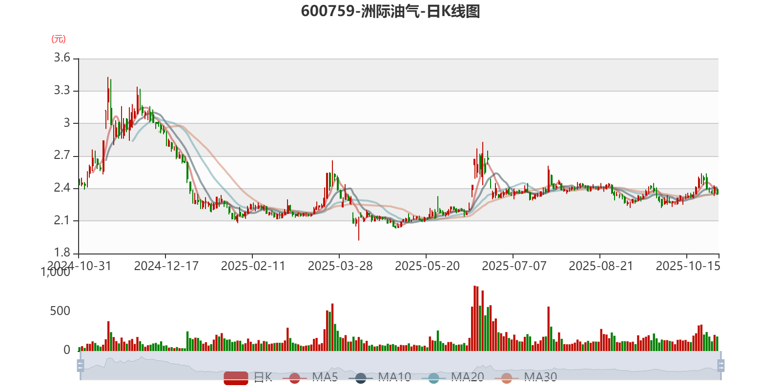 以10月30日收盘价计算,洲际油气目前市盈率(TTM)约为23.49倍,市净率(LF)约1.11倍,市销率(TTM)约4.5倍。