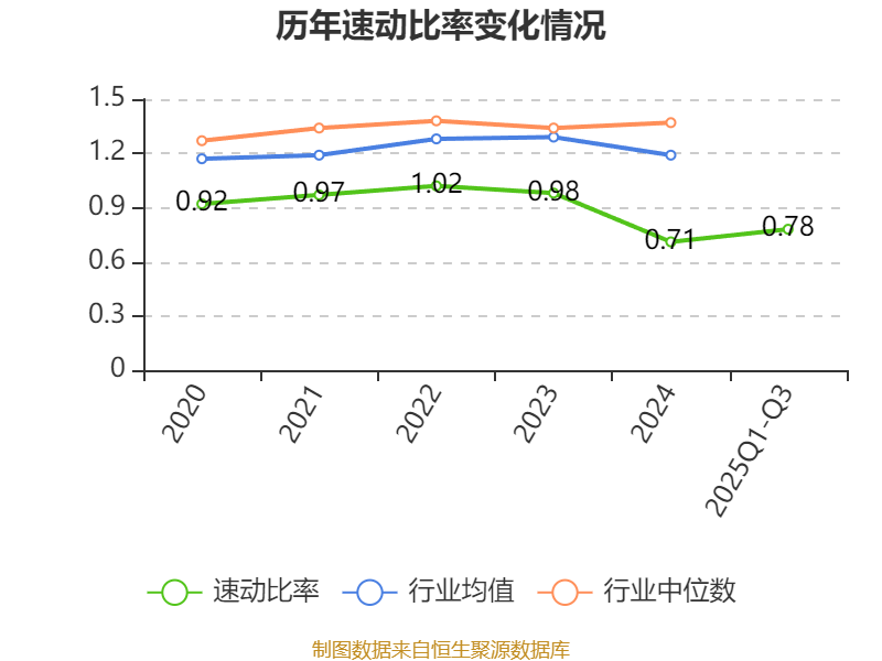 2025年前三季度,公司流动比率为1.13,速动比率为0.78。