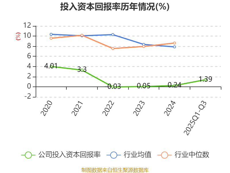 盈利能力方面, 2025年前三季度公司加权平均净资产收益率为0.9%,同比上升0.53个百分点。公司2025年前三季度投入资本回报率为1.39%,较上年同期上升1.64个百分点。