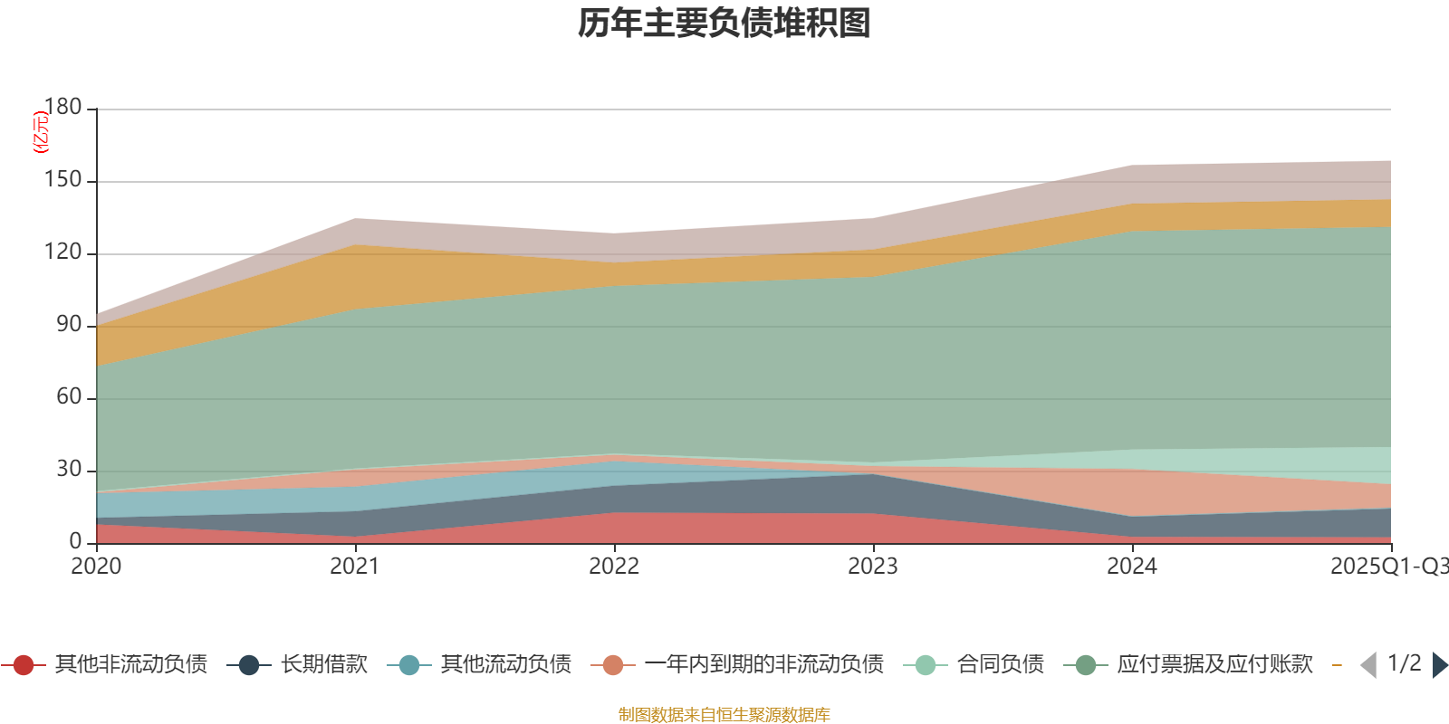 负债重大变化方面,截至2025年三季度末,公司一年内到期的非流动负债较上年末减少50.18%,占公司总资产比重下降4.21个百分点;合同负债较上年末增加92.44%,占公司总资产比重上升3.08个百分点;长期借款较上年末增加42.95%,占公司总资产比重上升1.47个百分点;应交税费较上年末减少40.61%,占公司总资产比重下降0.19个百分点。