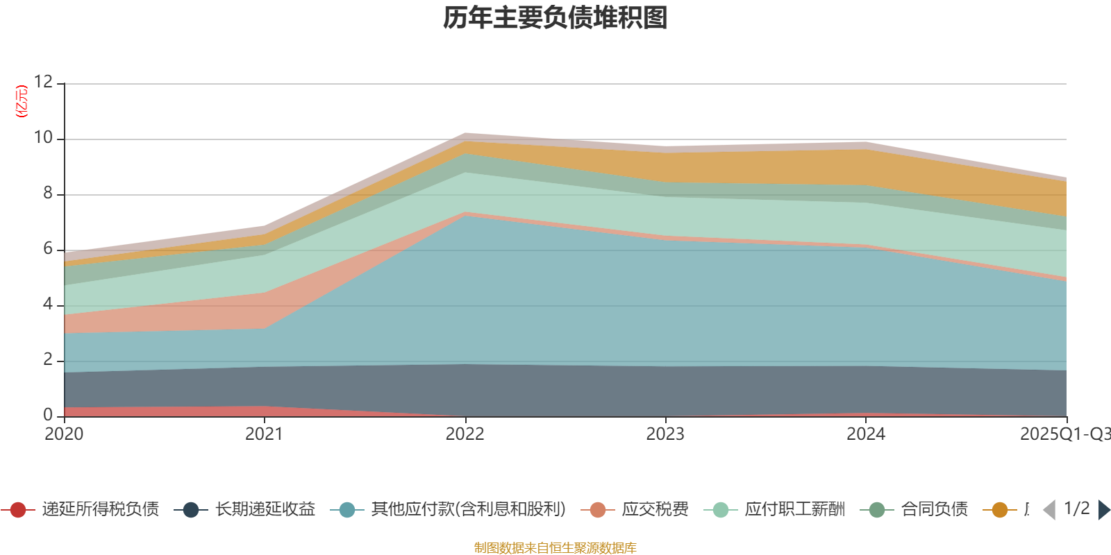 负债重大变化方面,截至2025年三季度末,公司其他应付款(含利息和股利)较上年末减少24.81%,占公司总资产比重下降0.9个百分点;应付职工薪酬较上年末增加11.98%,占公司总资产比重上升0.14个百分点;合同负债较上年末减少22.36%,占公司总资产比重下降0.12个百分点;递延所得税负债较上年末减少100%,占公司总资产比重下降0.1个百分点。