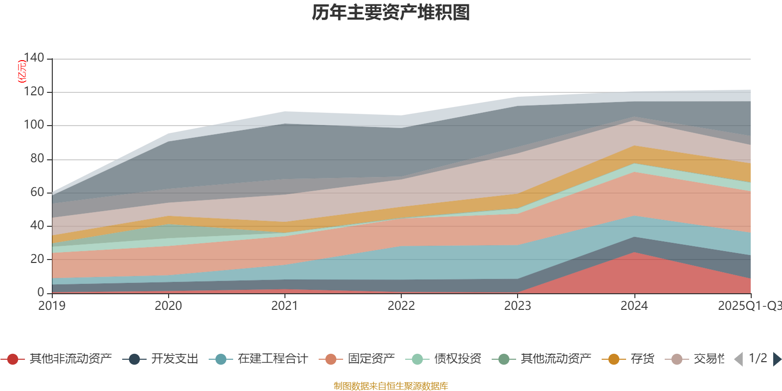 资产重大变化方面,截至2025年三季度末,公司其他非流动资产较上年末减少64.37%,占公司总资产比重下降13.15个百分点;货币资金较上年末增加128.65%,占公司总资产比重上升9.5个百分点;开发支出较上年末增加51.75%,占公司总资产比重上升3.85个百分点;交易性金融资产合计较上年末减少26.56%,占公司总资产比重下降3.38个百分点。