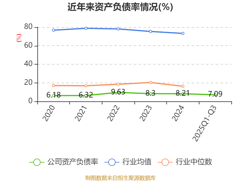 2025年前三季度,公司流动比率为7.2,速动比率为5.57。