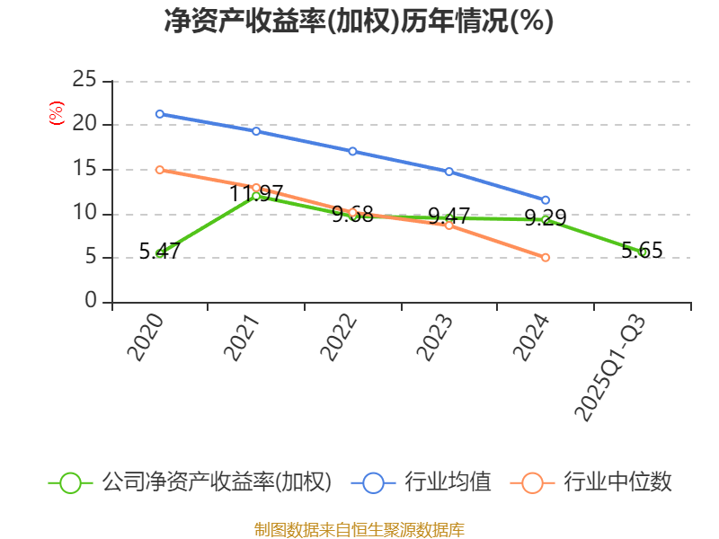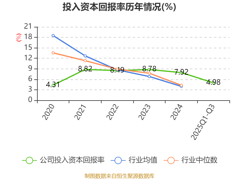 盈利能力方面, 2025年前三季度公司加权平均净资产收益率为5.65%,同比下降2.68个百分点。公司2025年前三季度投入资本回报率为4.98%,较上年同期下降2.27个百分点。