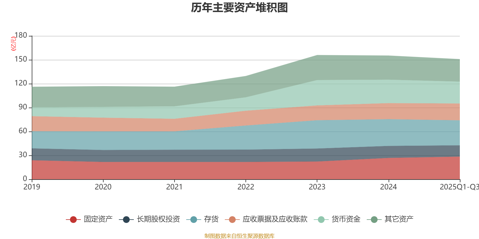 资产重大变化方面,截至2025年三季度末,公司固定资产较上年末增加6.24%,占公司总资产比重上升1.62个百分点;应收票据及应收账款较上年末增加4.4%,占公司总资产比重上升0.97个百分点;存货较上年末减少6.41%,占公司总资产比重下降0.79个百分点;货币资金较上年末减少6.56%,占公司总资产比重下降0.72个百分点。