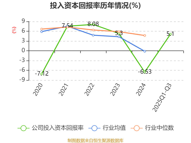 盈利能力方面, 2025年前三季度公司加权平均净资产收益率为6.3%,同比上升2.89个百分点。公司2025年前三季度投入资本回报率为5.1%,较上年同期上升2.22个百分点。