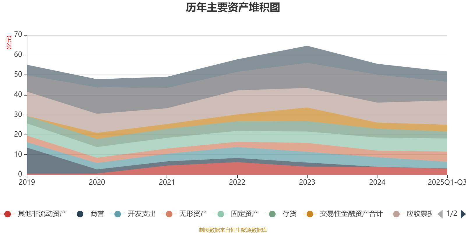 资产重大变化方面,截至2025年三季度末,公司货币资金较上年末减少33.38%,占公司总资产比重下降7.16个百分点;应收票据及应收账款较上年末增加21.84%,占公司总资产比重上升5.57个百分点;无形资产较上年末增加58.07%,占公司总资产比重上升4.12个百分点;开发支出较上年末减少30.94%,占公司总资产比重下降2.23个百分点。