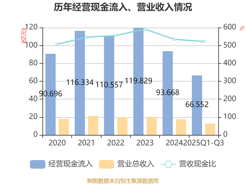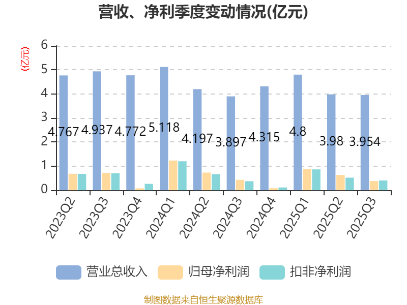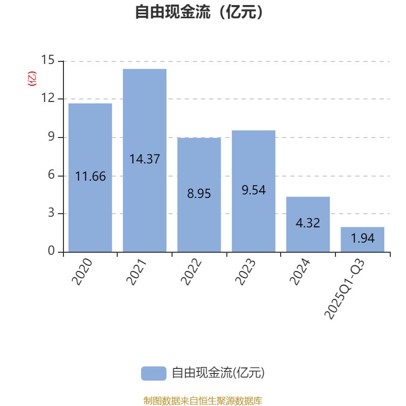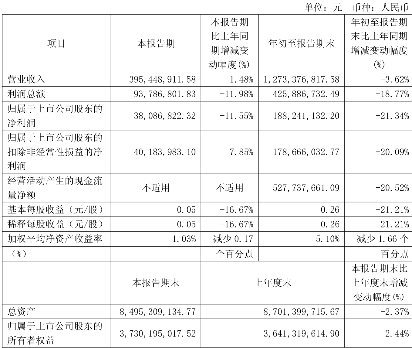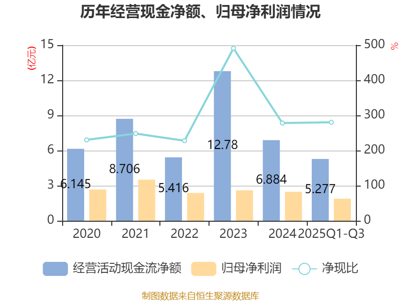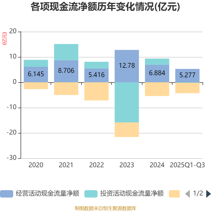 2025年前三季度,公司经营活动现金流净额为5.28亿元,同比下降20.52%;筹资活动现金流净额-4.12亿元,同比减少364.97万元;投资活动现金流净额-1942.28万元,上年同期为-9.05亿元。