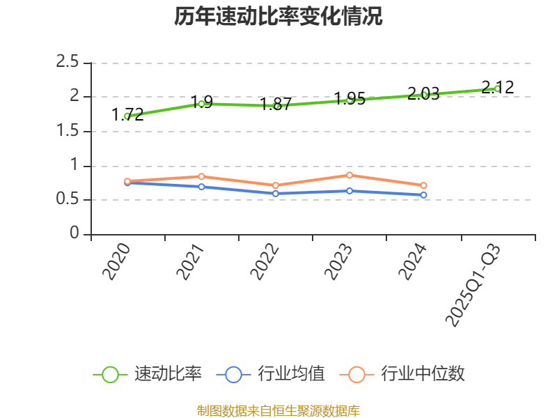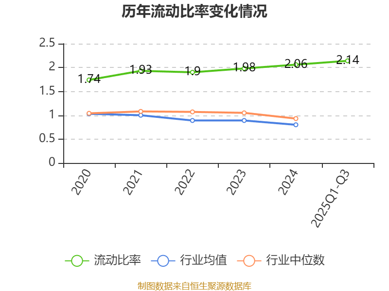 2025年前三季度,公司流动比率为2.14,速动比率为2.12。
