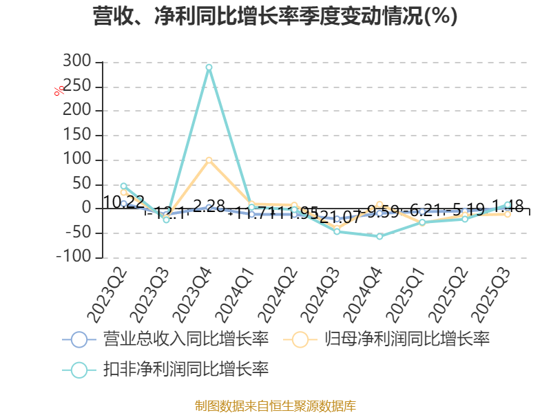 负债重大变化方面,截至2025年三季度末,公司租赁负债较上年末减少11.08%,占公司总资产比重下降1.32个百分点;应付职工薪酬较上年末减少71.62%,占公司总资产比重下降0.4个百分点;应付票据及应付账款较上年末减少5.92%,占公司总资产比重下降0.35个百分点;递延所得税负债较上年末增加31.79%,占公司总资产比重上升0.26个百分点。