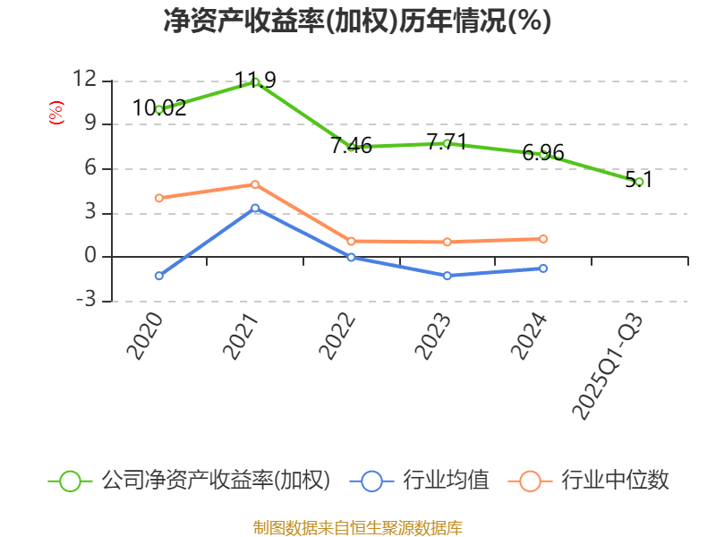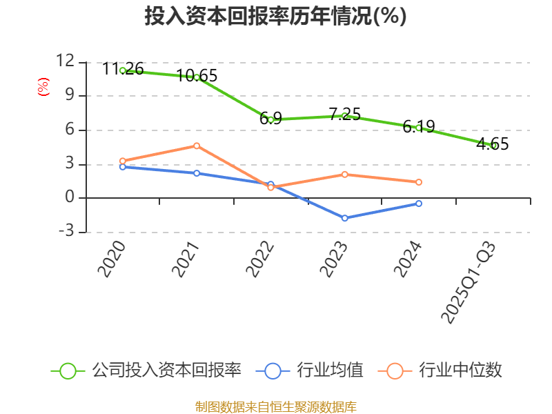 盈利能力方面, 2025年前三季度公司加权平均净资产收益率为5.1%,同比下降1.66个百分点。公司2025年前三季度投入资本回报率为4.65%,较上年同期下降1.2个百分点。