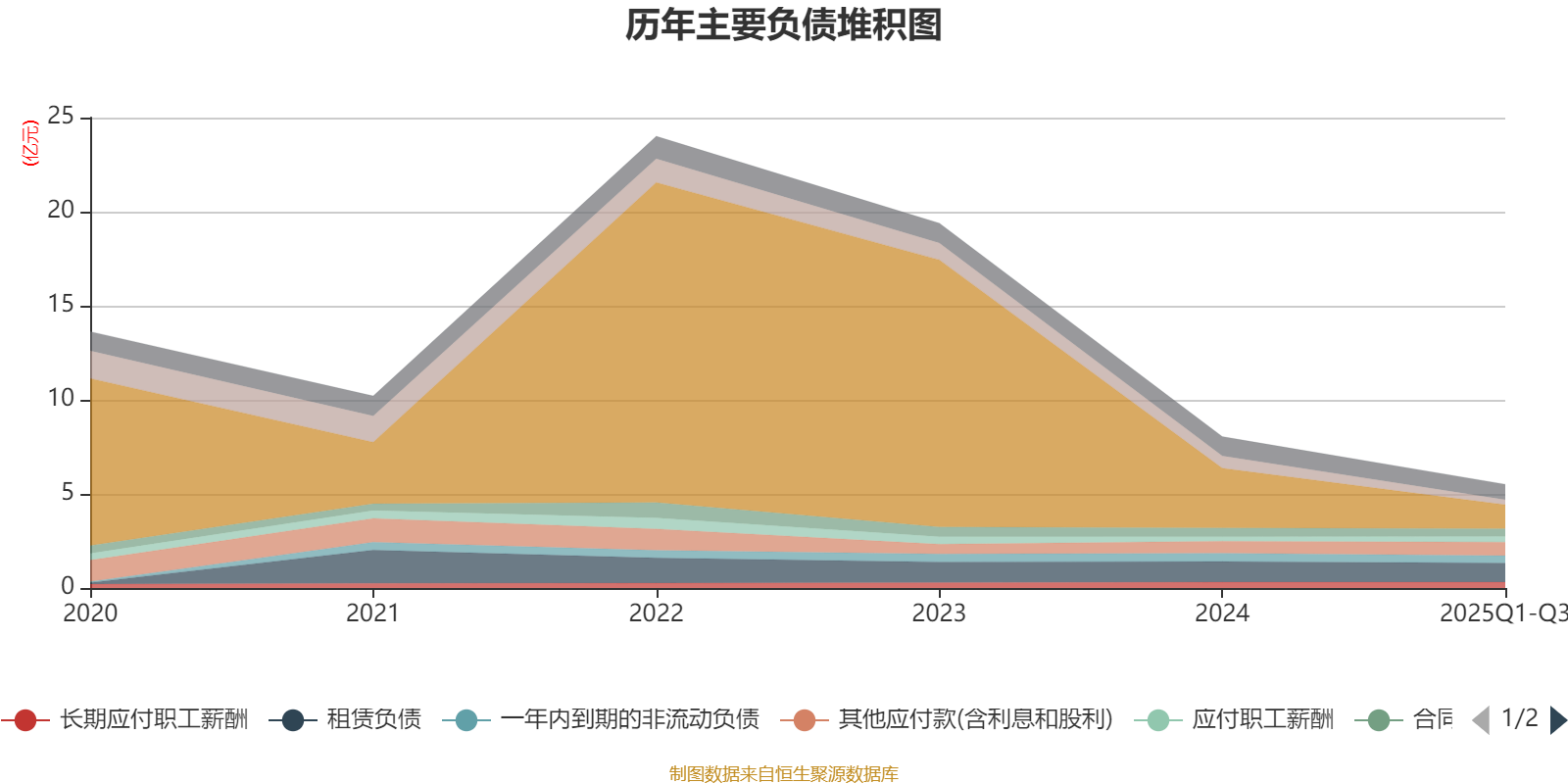 负债重大变化方面,截至2025年三季度末,公司应付票据及应付账款较上年末减少59.97%,占公司总资产比重下降8.52个百分点;短期借款较上年末减少59.34%,占公司总资产比重下降1.73个百分点;其他应付款(含利息和股利)较上年末增加12.8%,占公司总资产比重上升0.88个百分点;应交税费较上年末减少66.75%,占公司总资产比重下降0.75个百分点。