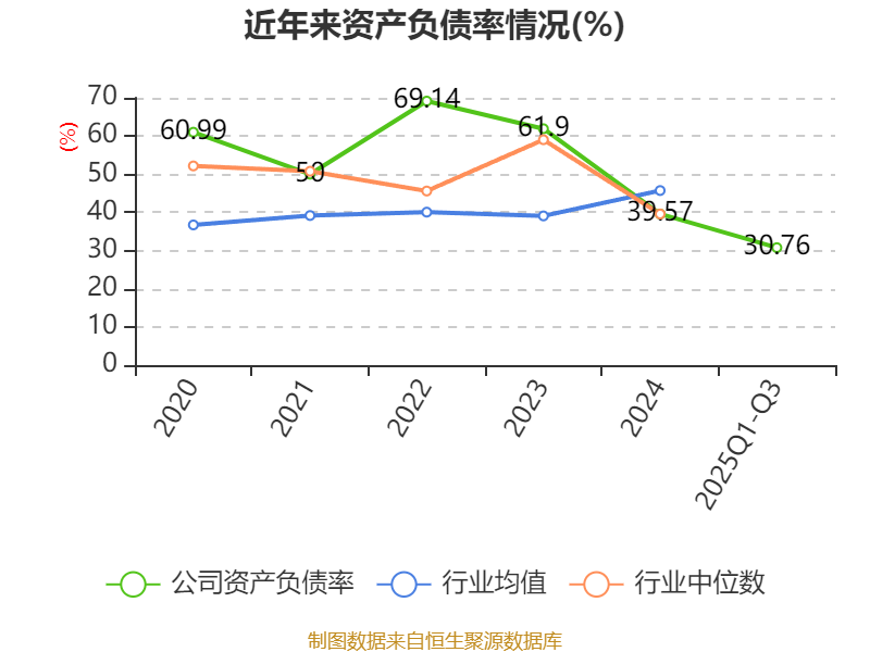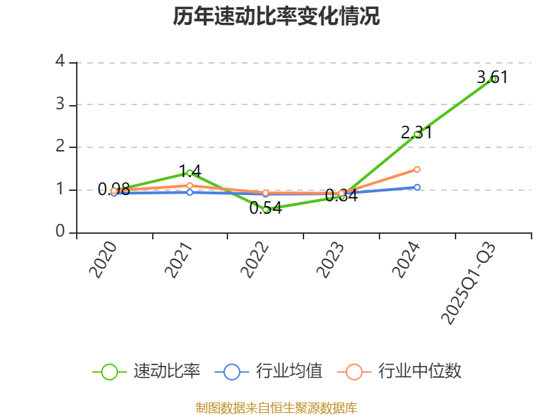 2025年前三季度,公司流动比率为3.97,速动比率为3.61。