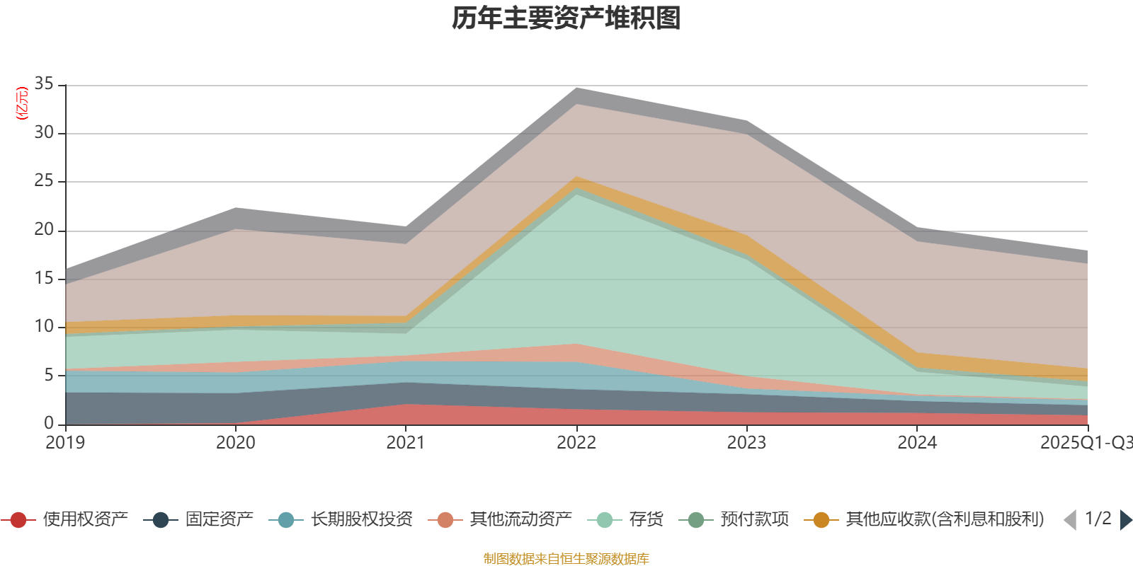 资产重大变化方面,截至2025年三季度末,公司存货较上年末减少45.45%,占公司总资产比重下降4.4个百分点;货币资金较上年末减少5.72%,占公司总资产比重上升3.92个百分点;预付款项较上年末增加29.99%,占公司总资产比重上升1.01个百分点;在建工程合计较上年末增加227.17%,占公司总资产比重上升0.73个百分点。