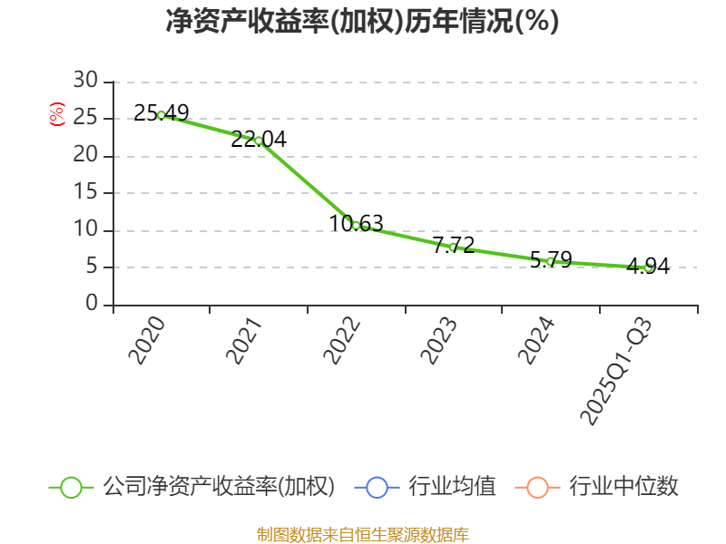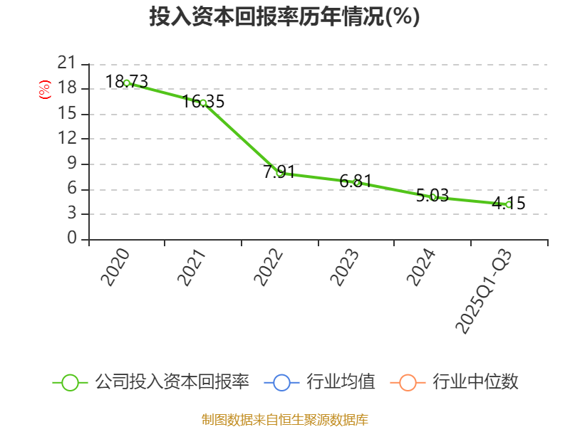 盈利能力方面, 2025年前三季度公司加权平均净资产收益率为4.94%,同比下降0.46个百分点。公司2025年前三季度投入资本回报率为4.15%,较上年同期下降0.61个百分点。