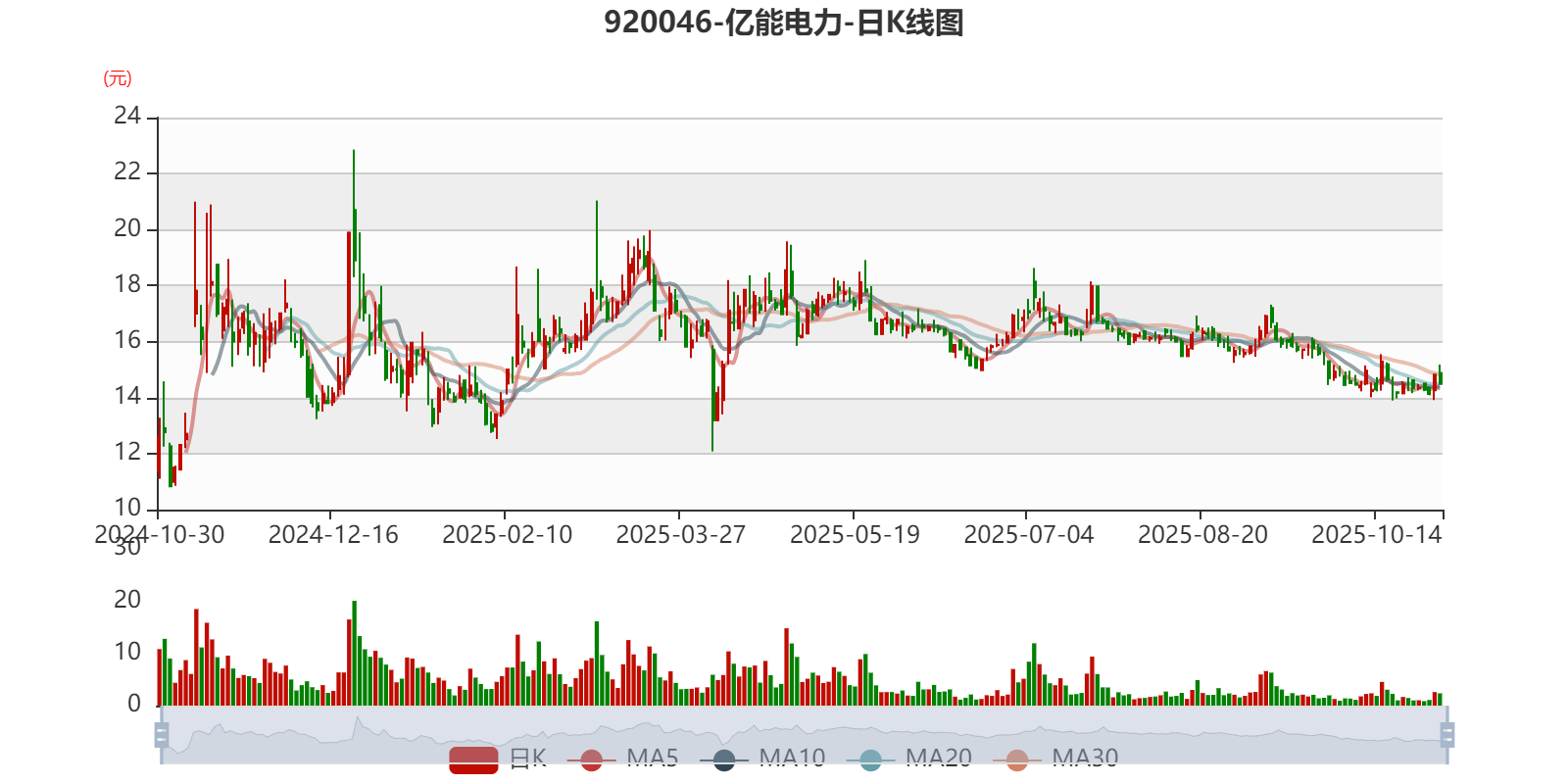 中证智能财讯亿能电力(920046)10月30日披露2025年第三季度报告。前三季度公司实现营业总收入1.45亿元,同比增长7.72%;归母净利润1223.48万元,同比下降6.28%;扣非净利润1214.4万元,同比增长1.07%;经营活动产生的现金流量净额为-3799.35万元,上年同期为3311.3万元;报告期内,亿能电力基本每股收益为0.12元,加权平均净资产收益率为4.94%。