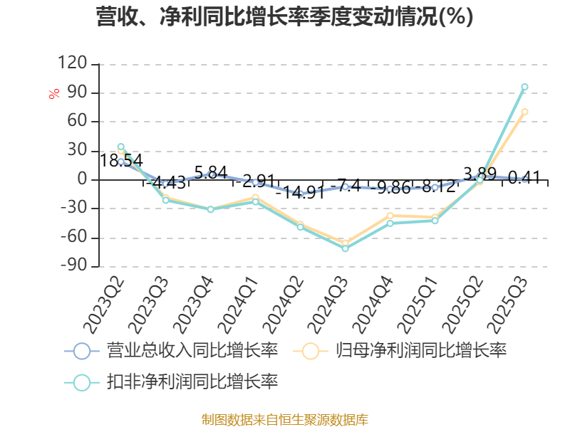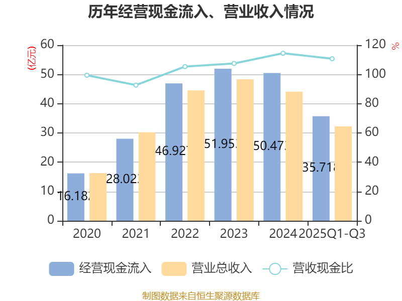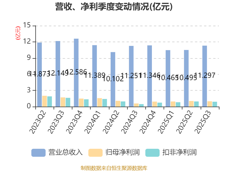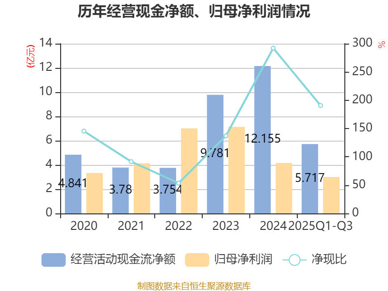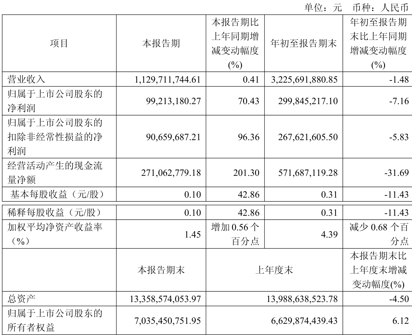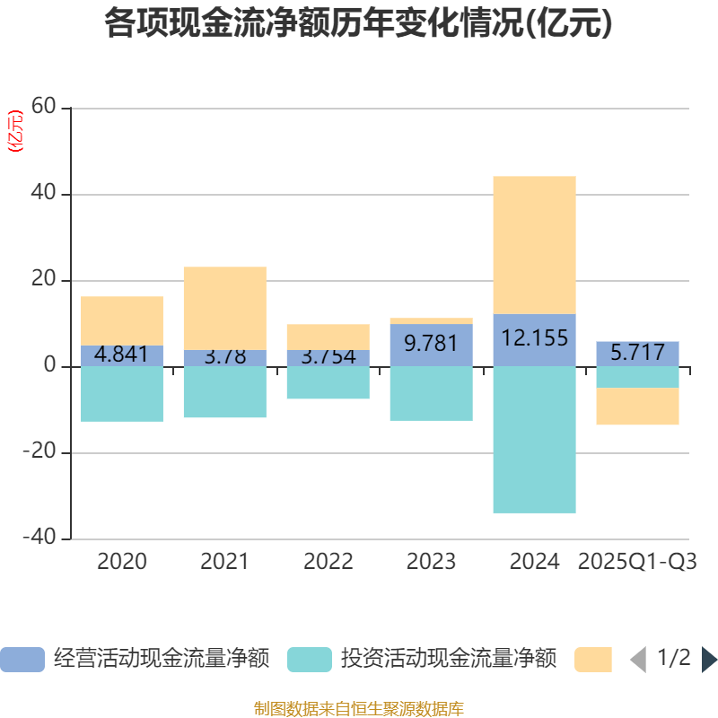 2025年前三季度,公司经营活动现金流净额为5.72亿元,同比下降31.69%;筹资活动现金流净额-8.53亿元,同比减少38.64亿元;投资活动现金流净额-5.06亿元,上年同期为-15.14亿元。