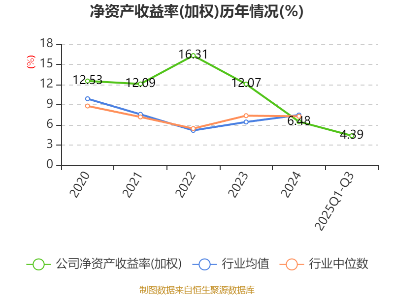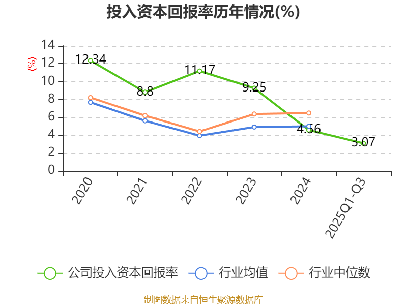 盈利能力方面, 2025年前三季度公司加权平均净资产收益率为4.39%,同比下降0.68个百分点。公司2025年前三季度投入资本回报率为3.07%,较上年同期下降0.45个百分点。