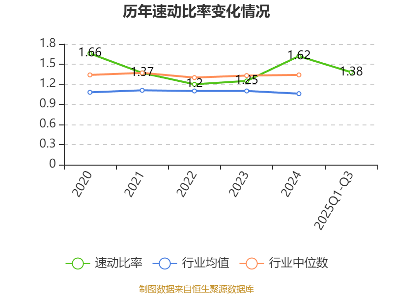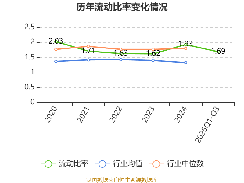 2025年前三季度,公司流动比率为1.69,速动比率为1.38。