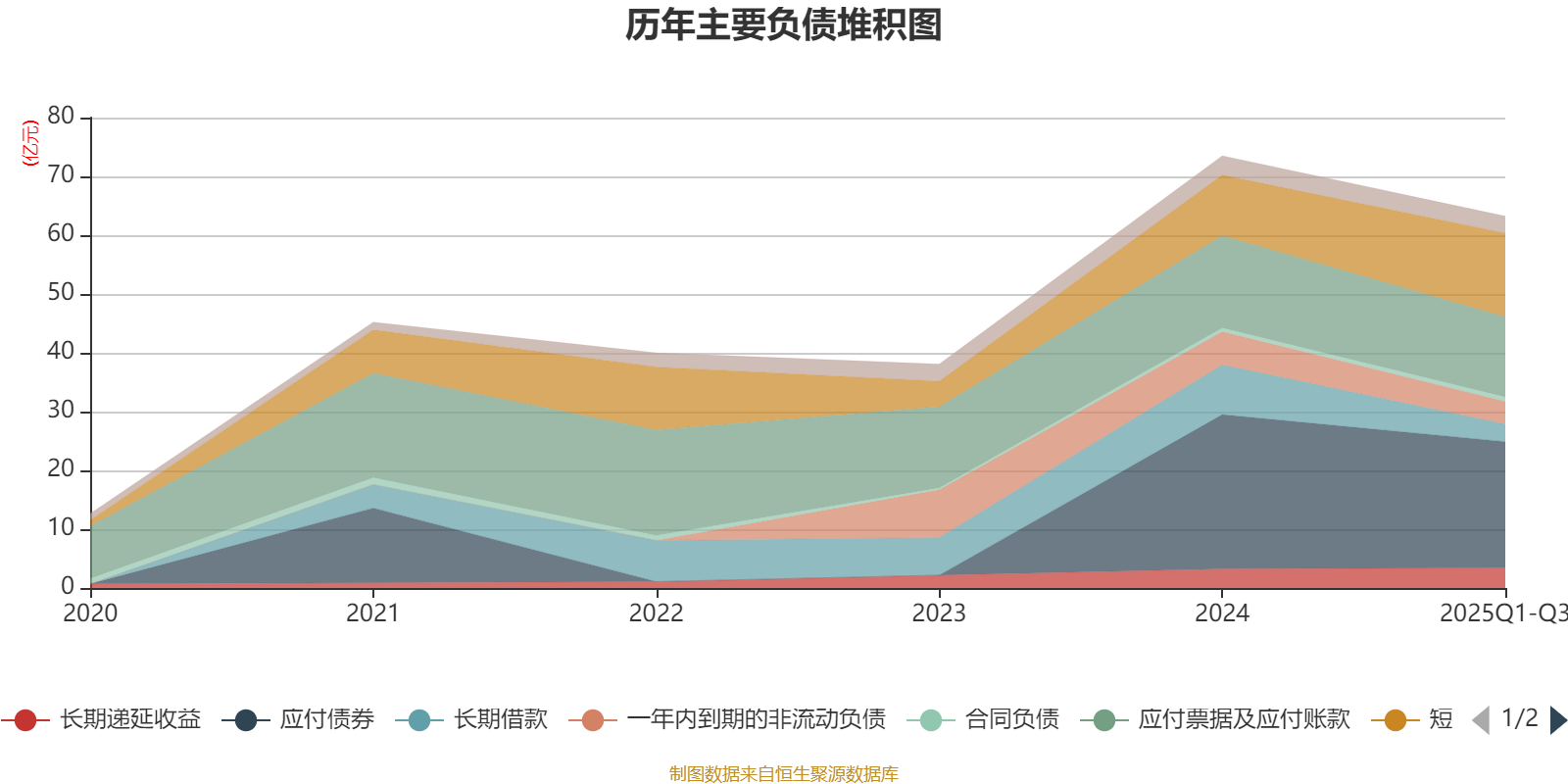 资产重大变化方面,截至2025年三季度末,公司货币资金较上年末减少25.33%,占公司总资产比重下降4.55个百分点;其他债权投资较上年末增加11.46%,占公司总资产比重上升1.99个百分点;交易性金融资产合计较上年末减少16.75%,占公司总资产比重下降1.11个百分点;在建工程合计较上年末增加23.82%,占公司总资产比重上升1.09个百分点。