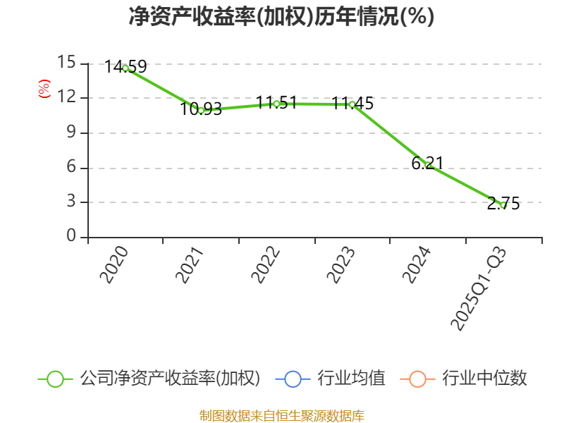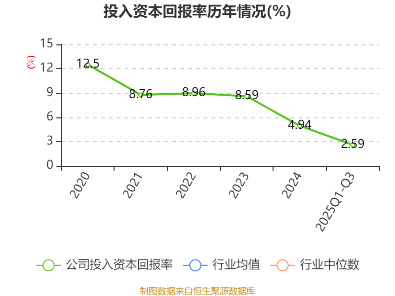 盈利能力方面, 2025年前三季度公司加权平均净资产收益率为2.75%,同比下降1.02个百分点。公司2025年前三季度投入资本回报率为2.59%,较上年同期下降0.66个百分点。