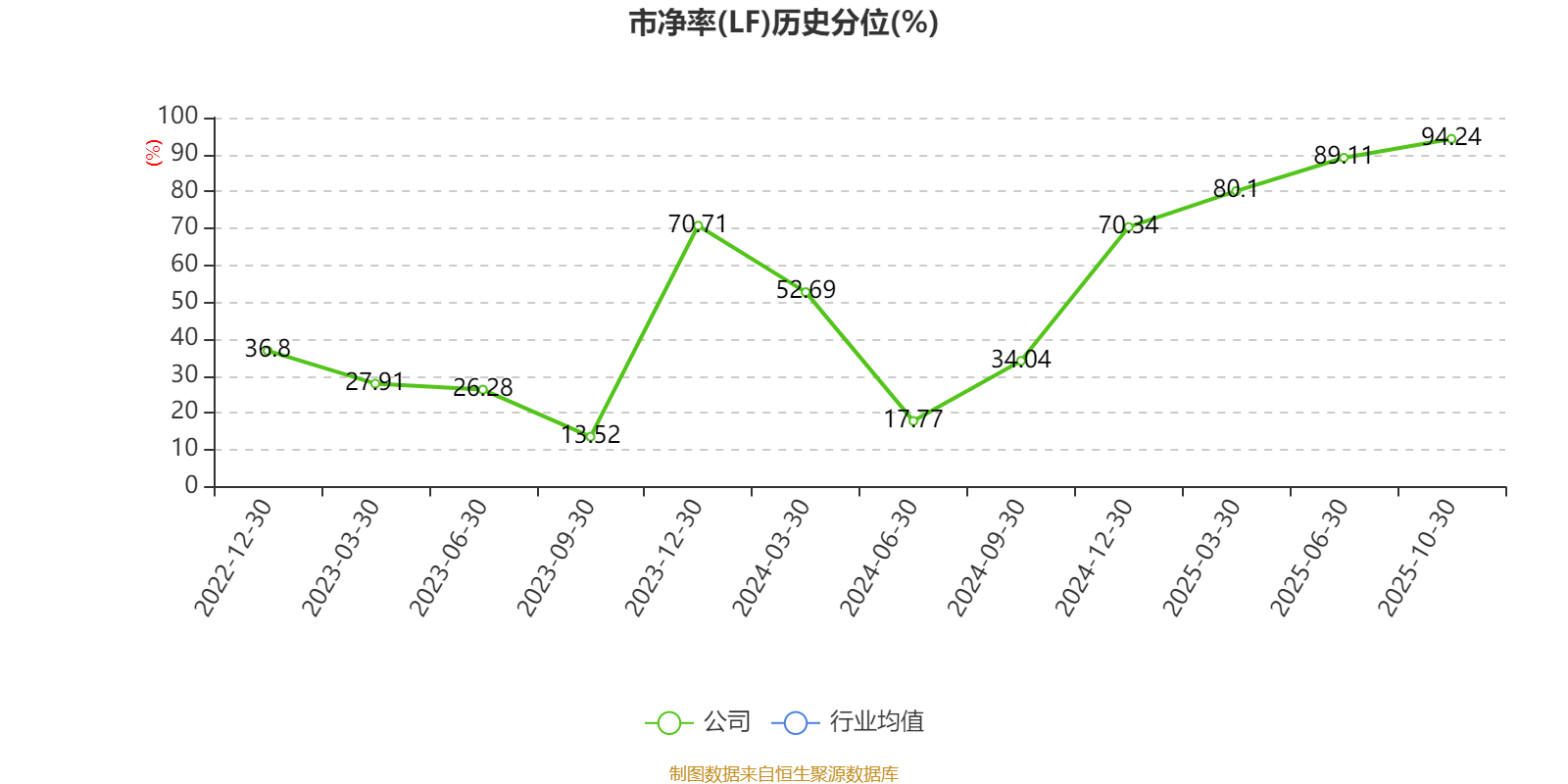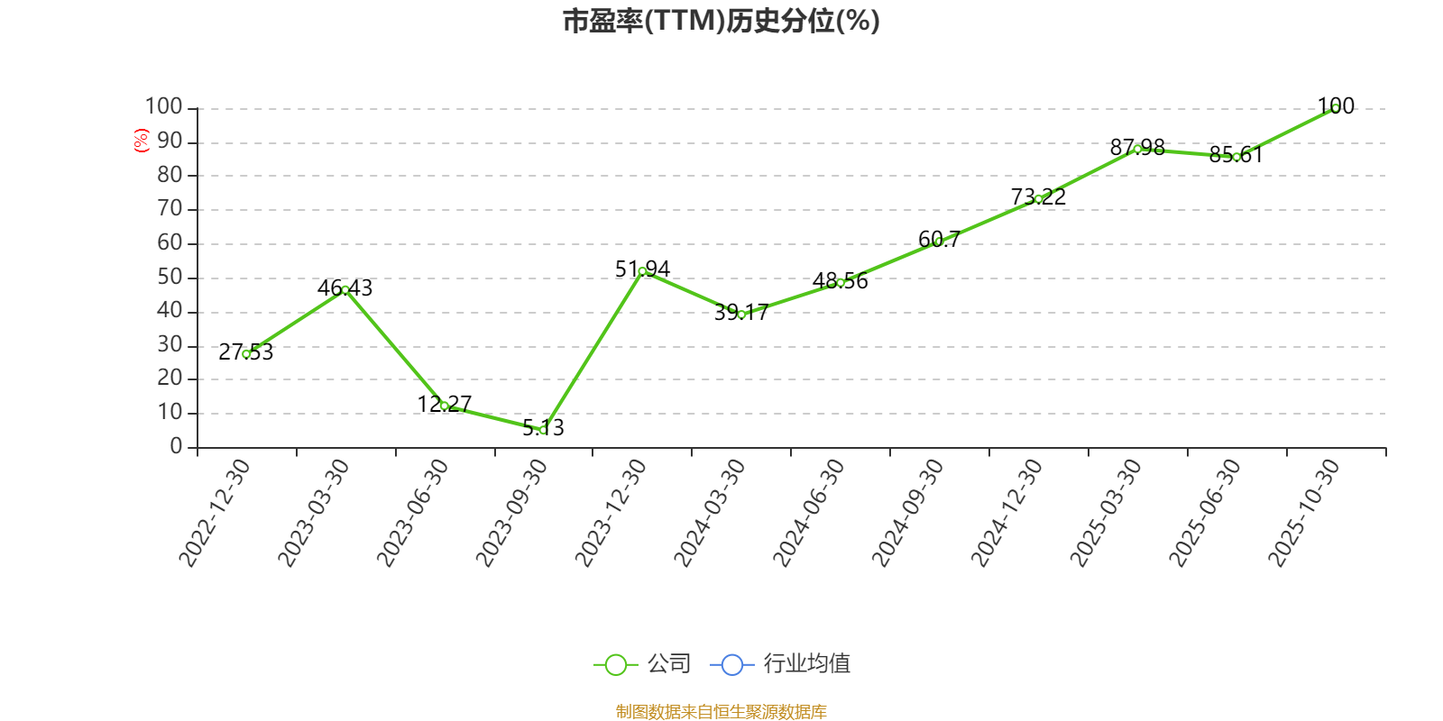 市盈率、市净率为负时,不显示当期分位数,会导致折线图中断。