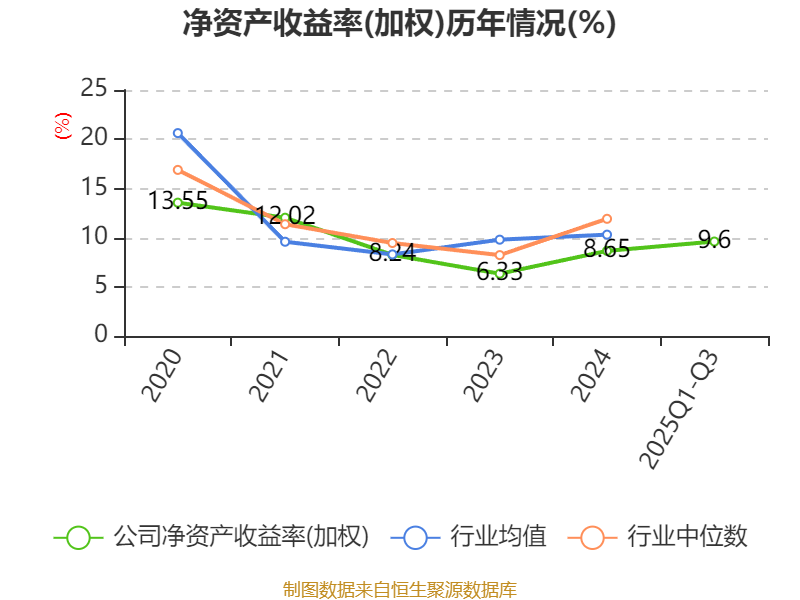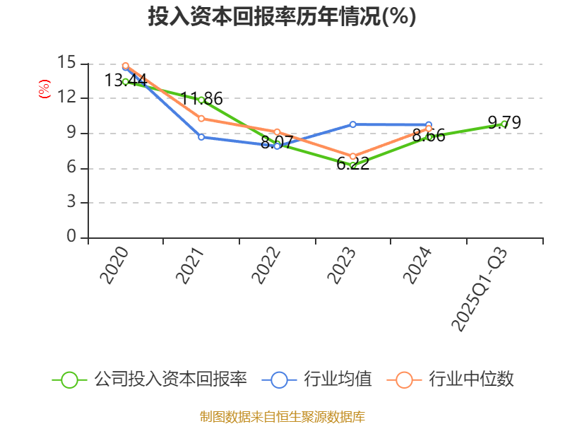 盈利能力方面, 2025年前三季度公司加权平均净资产收益率为9.6%,同比上升3.2个百分点。公司2025年前三季度投入资本回报率为9.79%,较上年同期上升3.12个百分点。