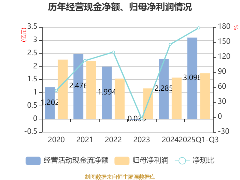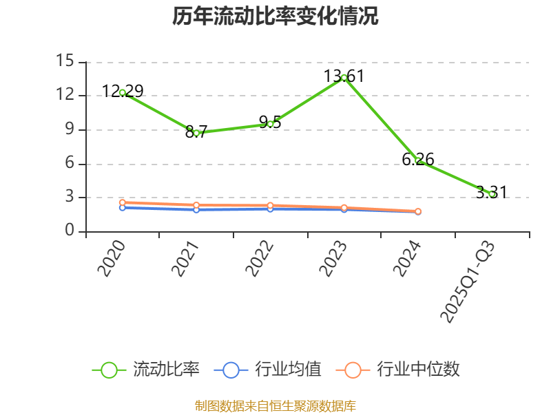 2025年前三季度,公司流动比率为3.31,速动比率为2.62。