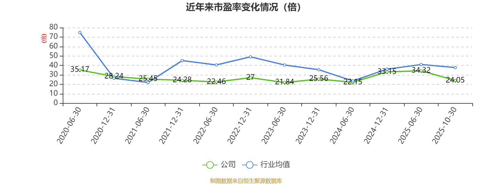 以10月30日收盘价计算,有友食品目前市盈率(TTM)约为24.05倍,市净率(LF)约2.87倍,市销率(TTM)约3.28倍。