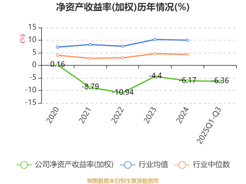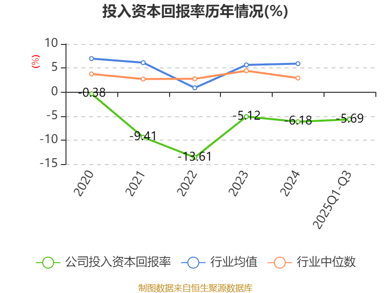 盈利能力方面, 2025年前三季度公司加权平均净资产收益率为-6.36%,同比下降3.19个百分点。公司2025年前三季度投入资本回报率为-5.69%,较上年同期下降2.6个百分点。