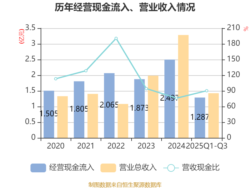 2025年前三季度,公司流动比率为2.01,速动比率为0.91。