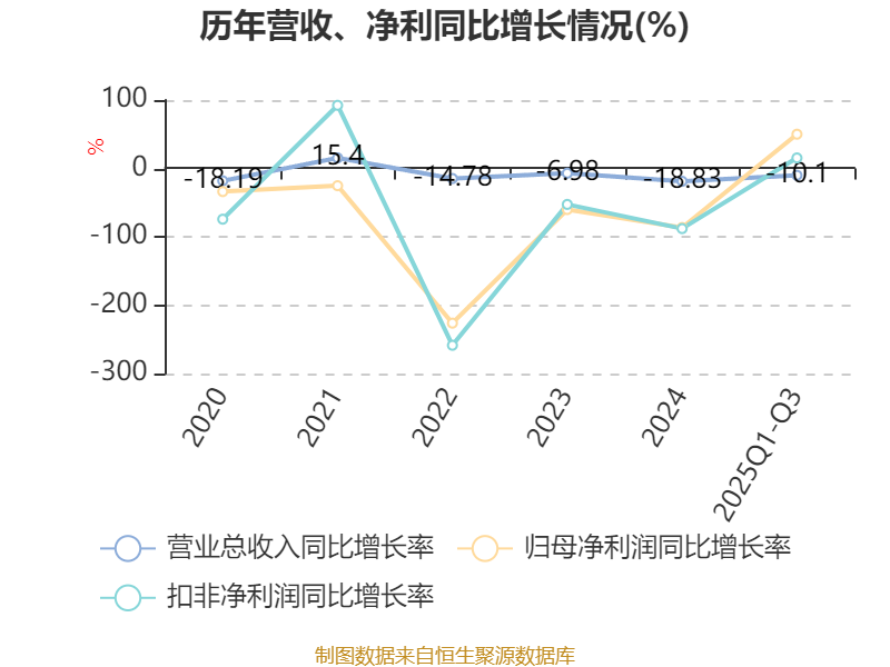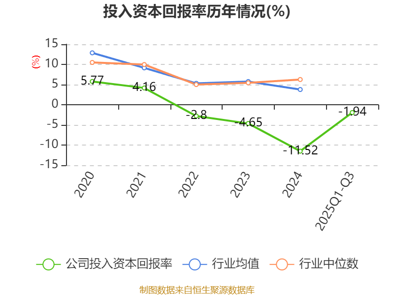 盈利能力方面, 2025年前三季度公司加权平均净资产收益率为-8.37%,同比上升4.56个百分点。公司2025年前三季度投入资本回报率为-1.94%,较上年同期上升3.27个百分点。