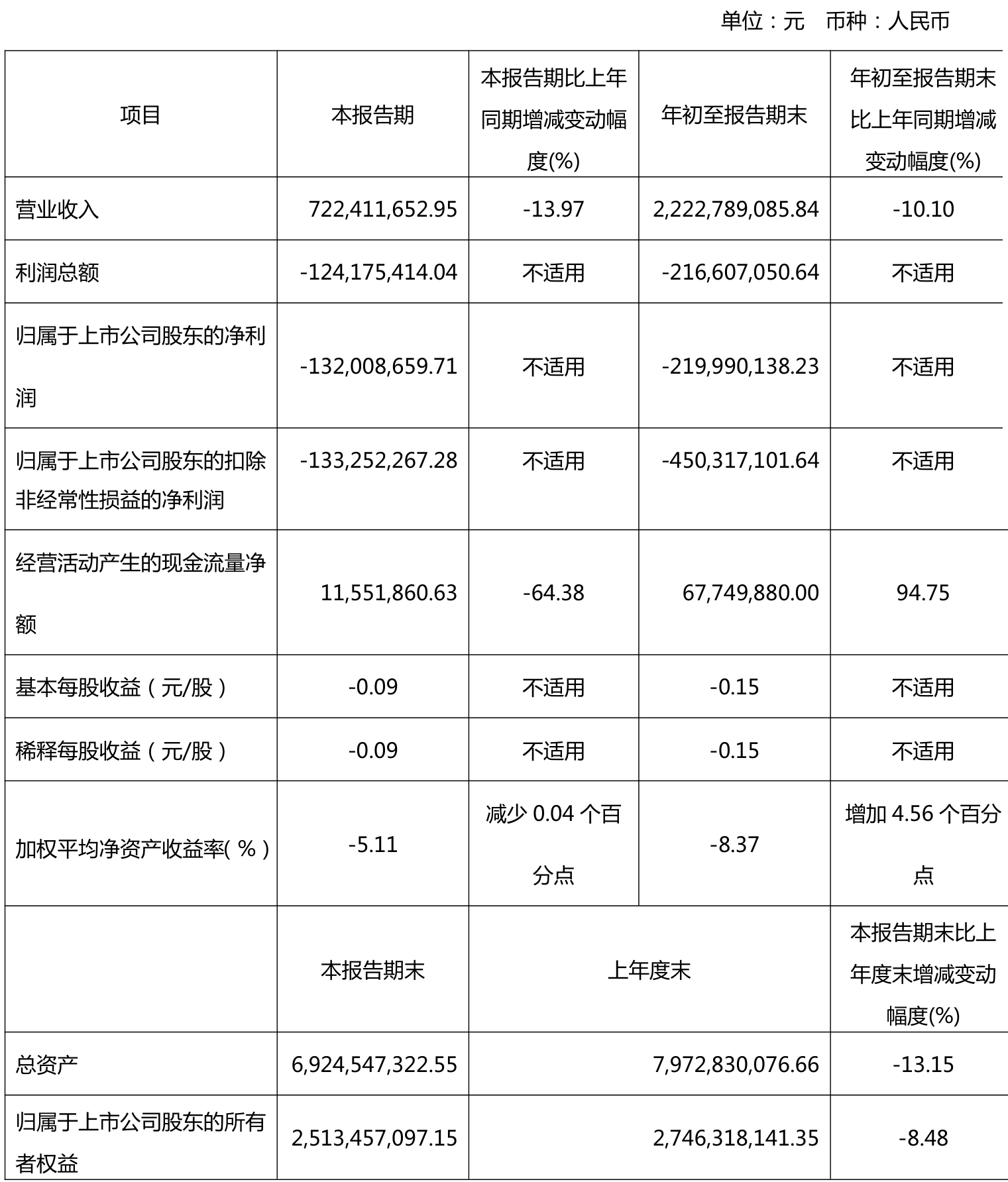 中证智能财讯美克家居(600337)10月31日披露2025年第三季度报告。前三季度公司实现营业总收入22.23亿元,同比下降10.10%;归母净利润亏损2.2亿元,上年同期亏损4.4亿元;扣非净利润亏损4.5亿元,上年同期亏损5.32亿元;经营活动产生的现金流量净额为6774.99万元,同比增长94.75%;报告期内,美克家居基本每股收益为-0.15元,加权平均净资产收益率为-8.37%。
