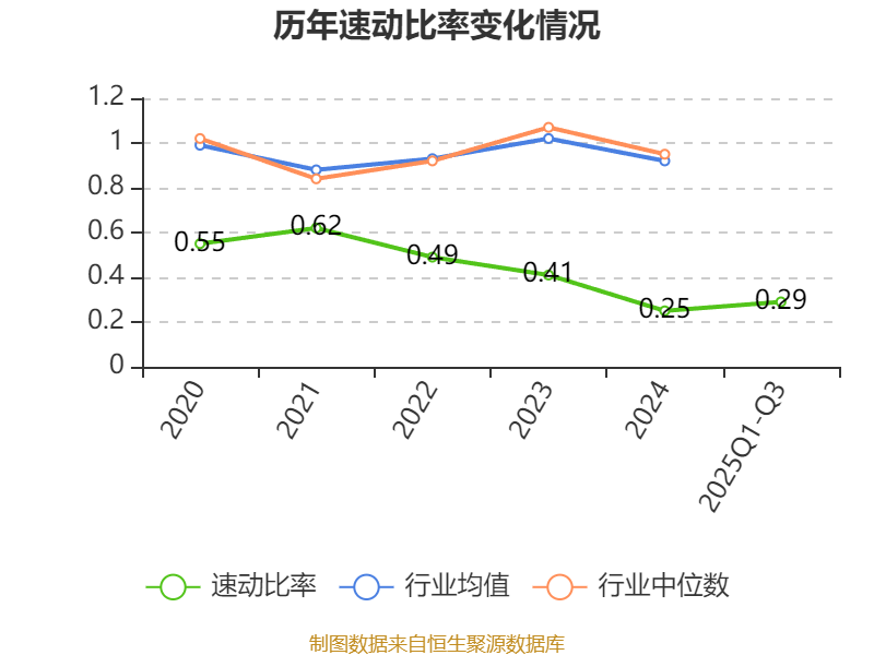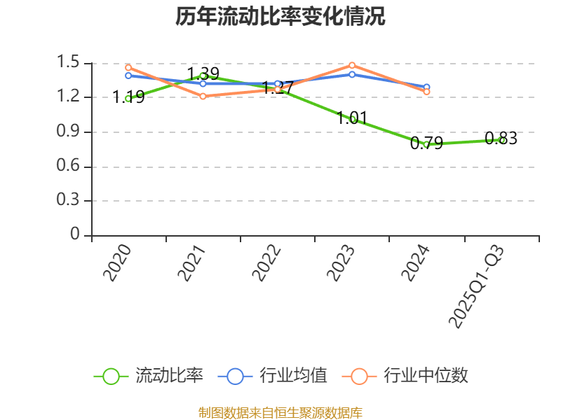2025年前三季度,公司流动比率为0.83,速动比率为0.29。