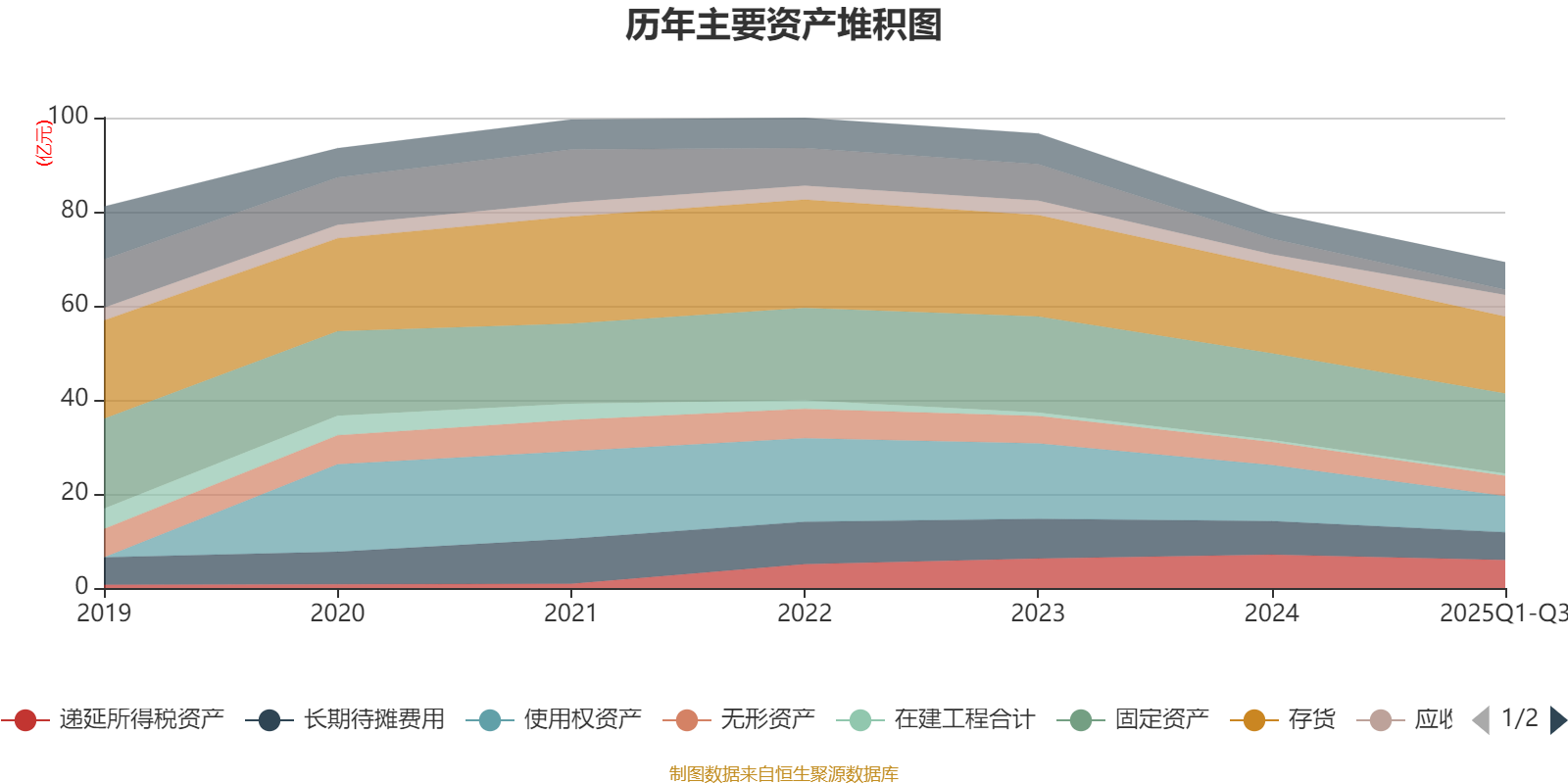 资产重大变化方面,截至2025年三季度末,公司使用权资产较上年末减少35.38%,占公司总资产比重下降3.83个百分点;应收票据及应收账款较上年末增加87.9%,占公司总资产比重上升3.59个百分点;货币资金较上年末减少65.41%,占公司总资产比重下降2.52个百分点;固定资产较上年末减少7.52%,占公司总资产比重上升1.5个百分点。
