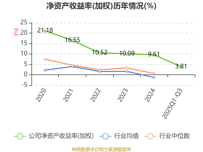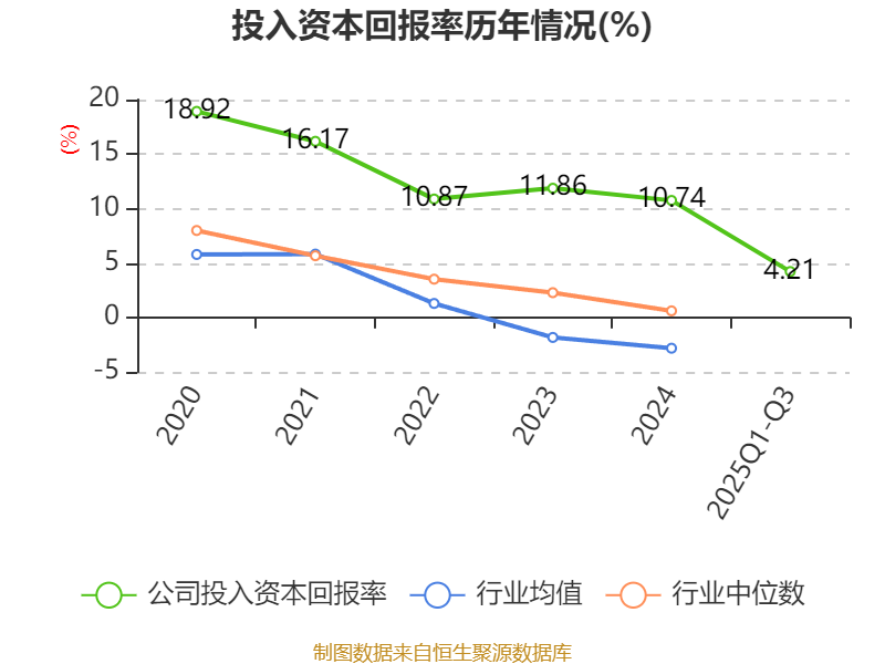 盈利能力方面, 2025年前三季度公司加权平均净资产收益率为3.81%,同比下降0.29个百分点。公司2025年前三季度投入资本回报率为4.21%,较上年同期下降0.63个百分点。