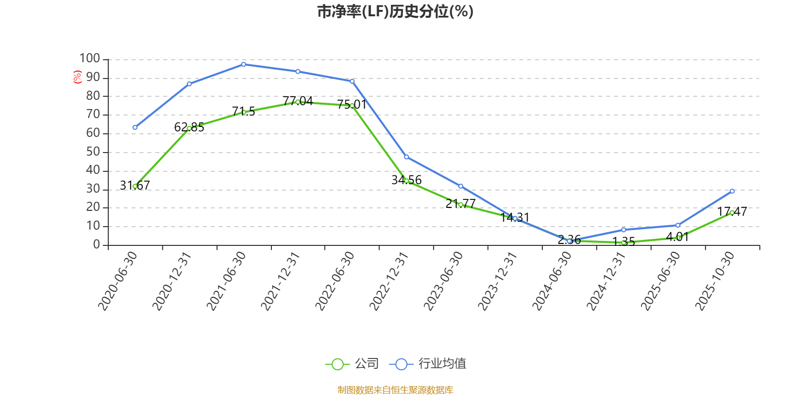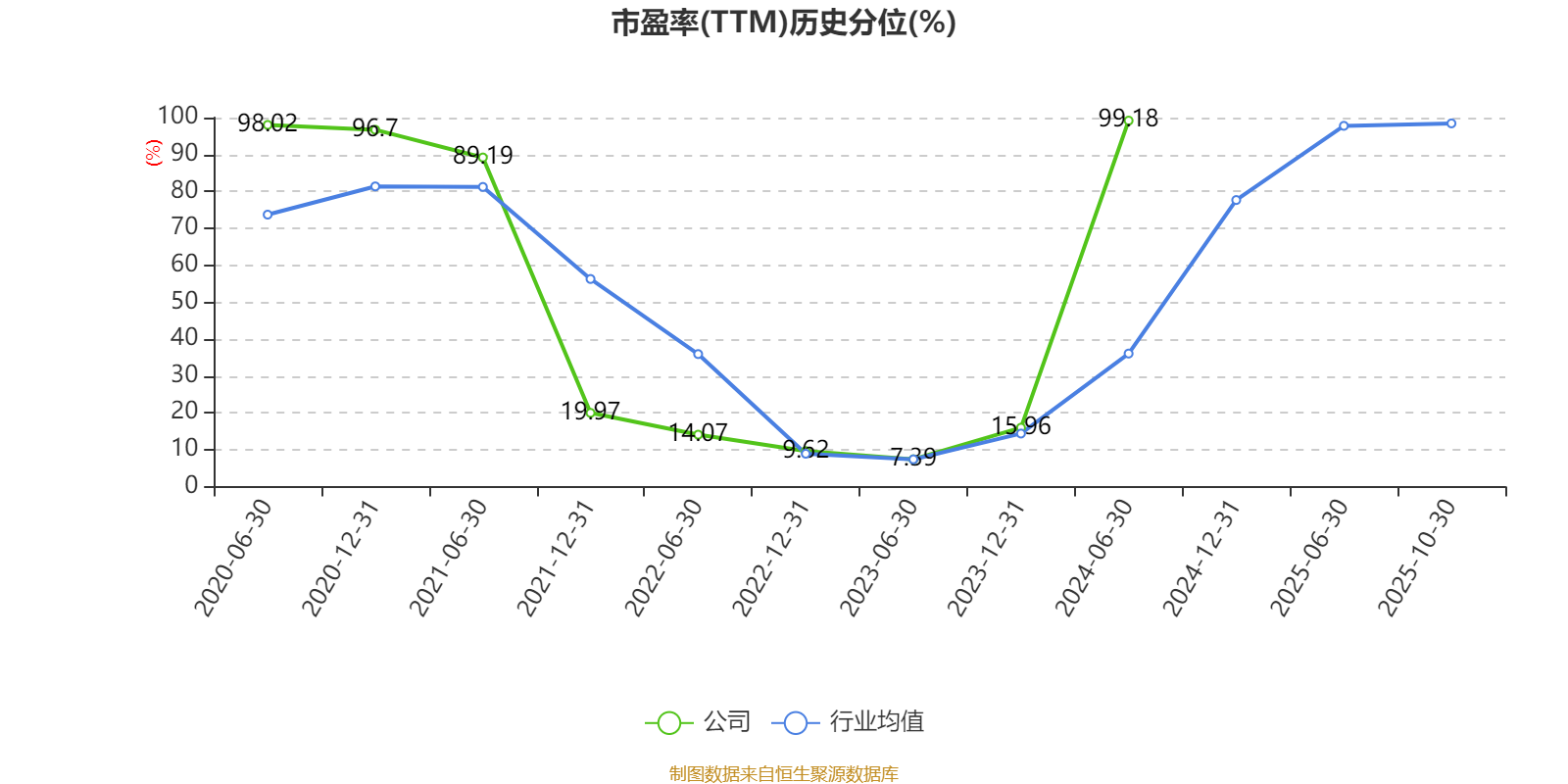 市盈率、市净率为负时,不显示当期分位数,会导致折线图中断。