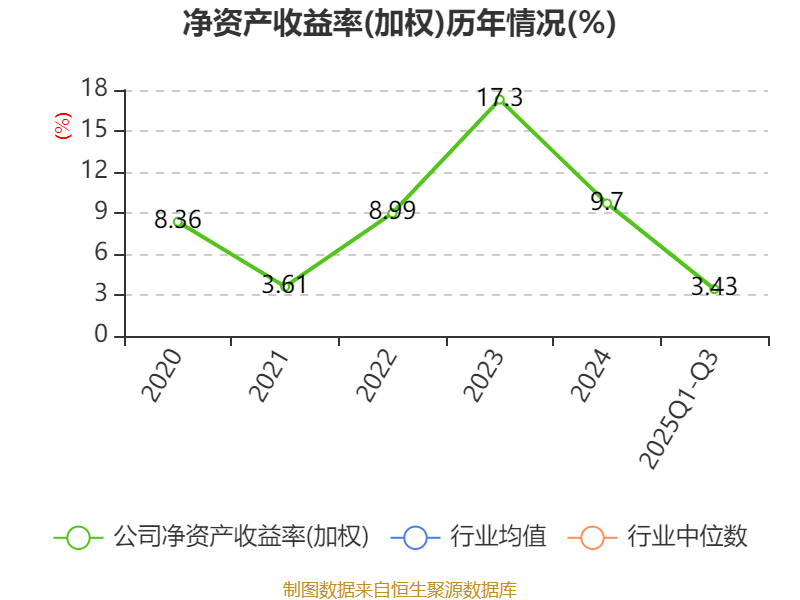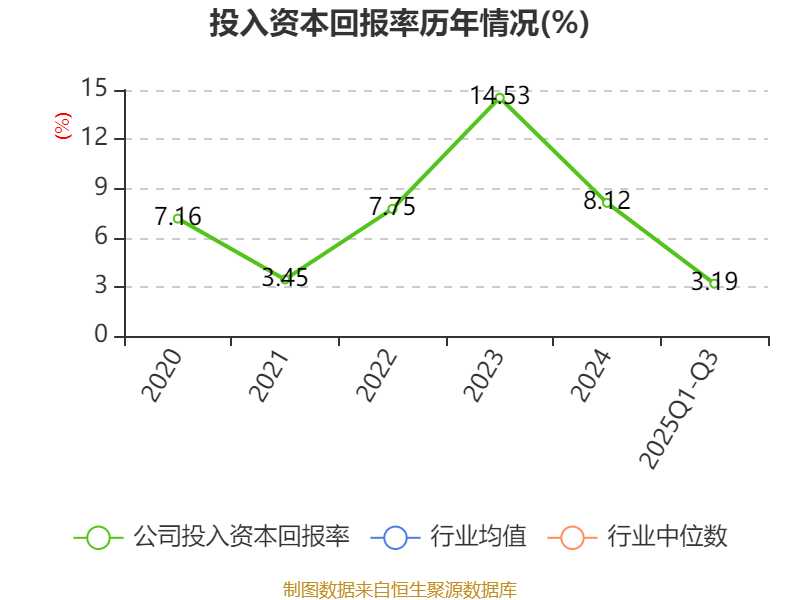盈利能力方面, 2025年前三季度公司加权平均净资产收益率为3.43%,同比下降4.35个百分点。公司2025年前三季度投入资本回报率为3.19%,较上年同期下降3.3个百分点。