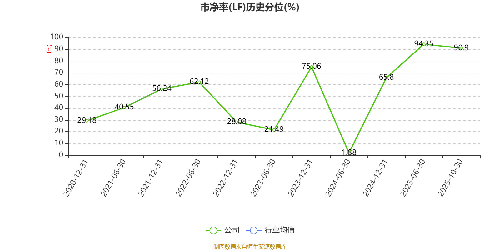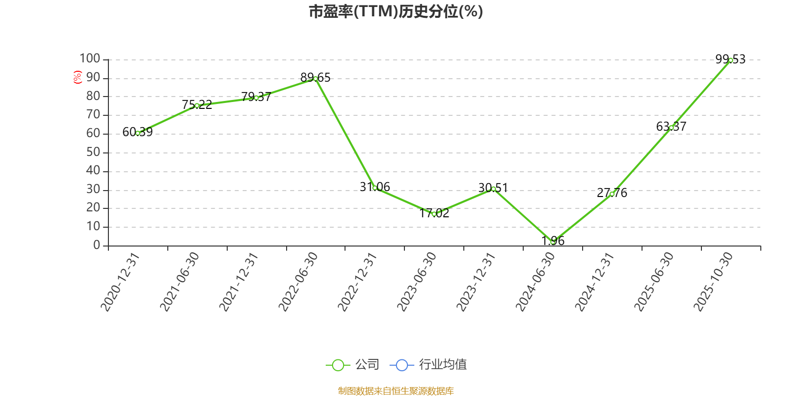 市盈率、市净率为负时,不显示当期分位数,会导致折线图中断。
