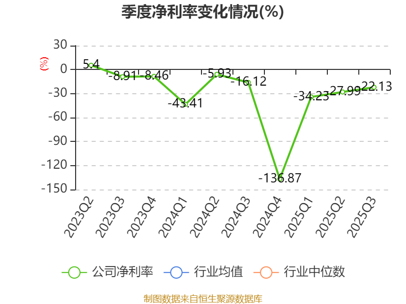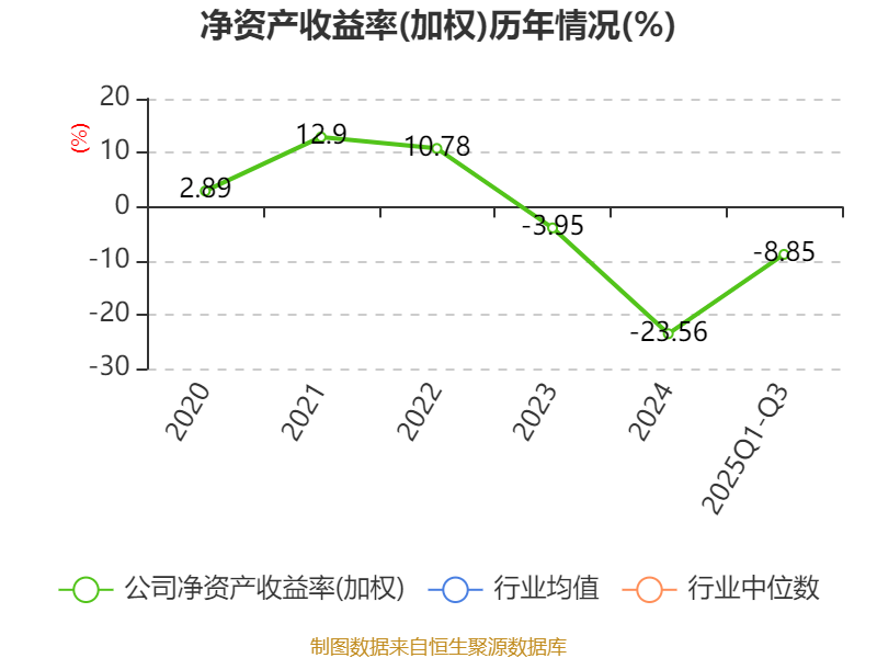 盈利能力方面, 2025年前三季度公司加权平均净资产收益率为-8.85%,同比下降3.2个百分点。公司2025年前三季度投入资本回报率为-5.75%,较上年同期下降2.03个百分点。