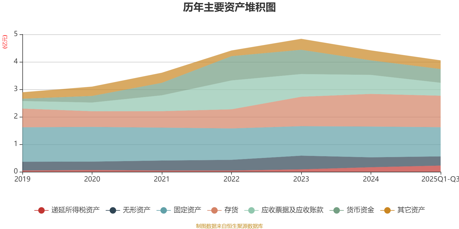 资产重大变化方面,截至2025年三季度末,公司应收票据及应收账款较上年末减少32.14%,占公司总资产比重下降4.1个百分点;递延所得税资产较上年末增加37.14%,占公司总资产比重上升1.84个百分点;存货较上年末减少3.52%,占公司总资产比重上升1.37个百分点;固定资产较上年末减少5.05%,占公司总资产比重上升0.88个百分点。