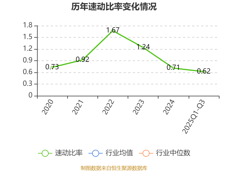 2025年前三季度,公司流动比率为1.31,速动比率为0.62。