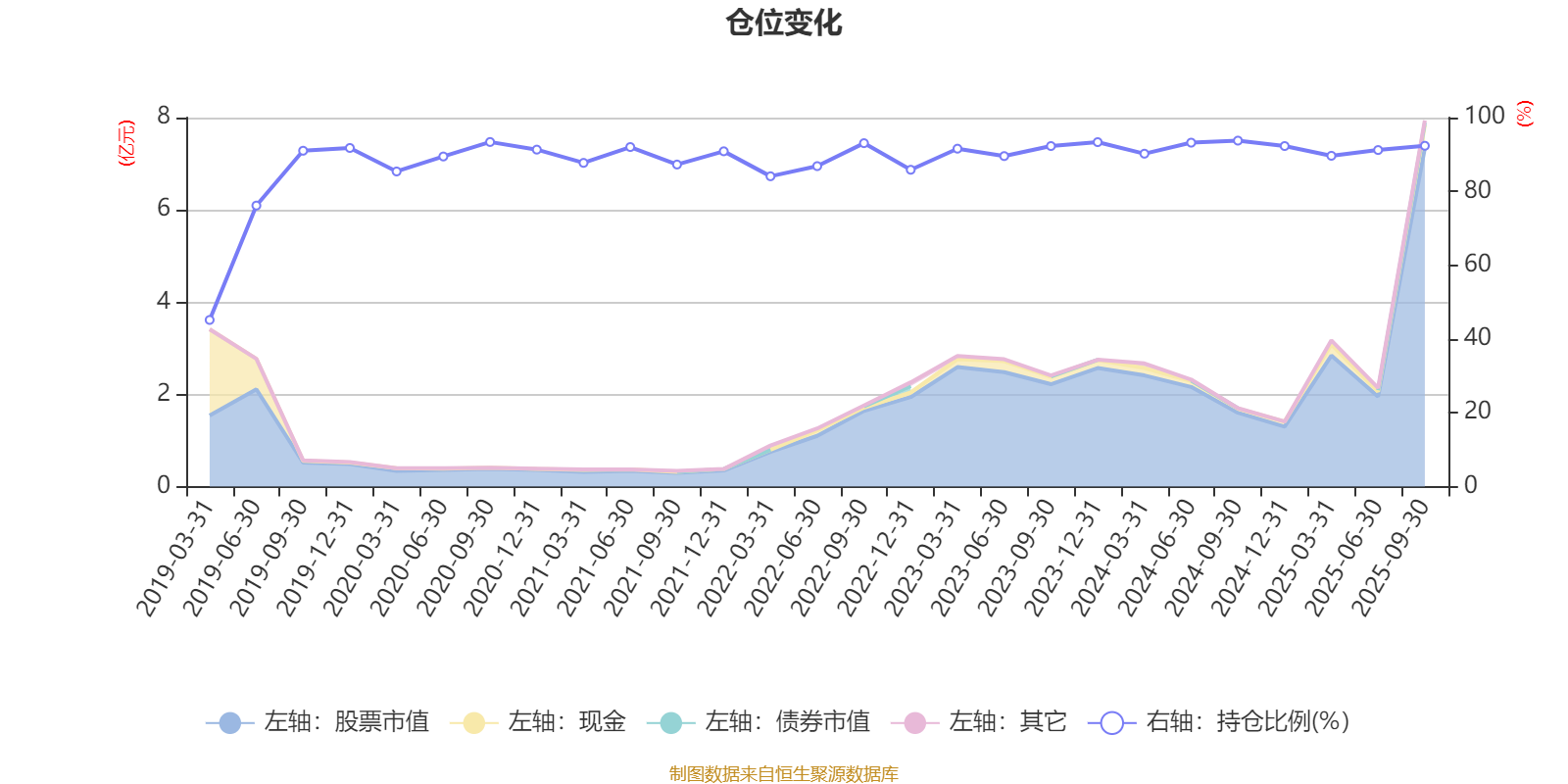 据定期报告数据统计,近三年平均股票仓位为91.28%,同类平均为72.35%。2024年三季度末基金达到93.76%的最高仓位,2019年一季度末最低,为45.16%。