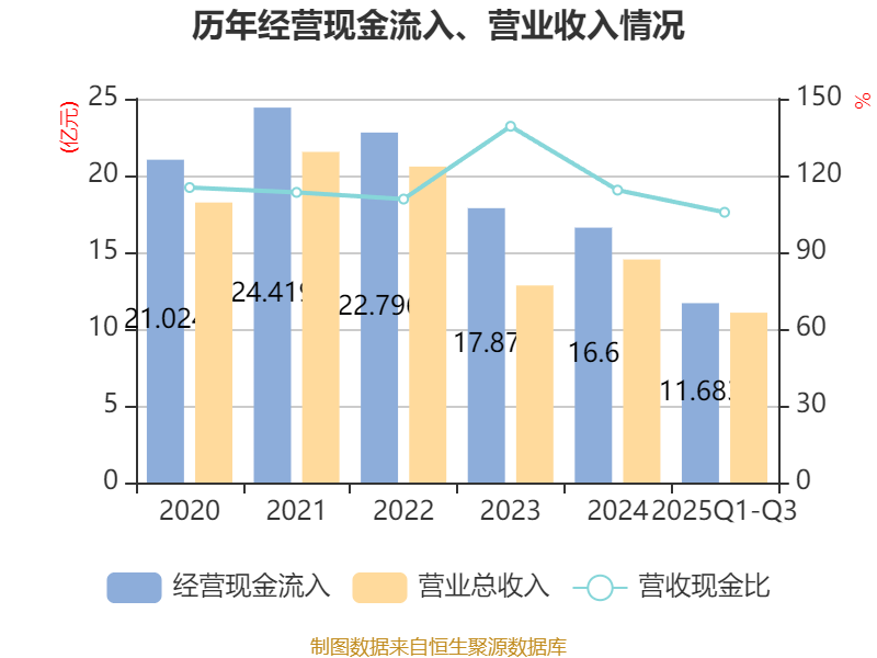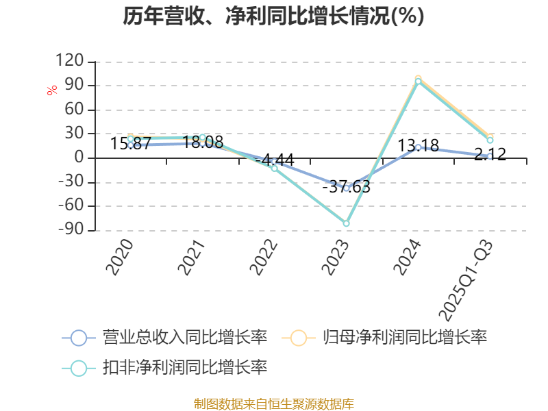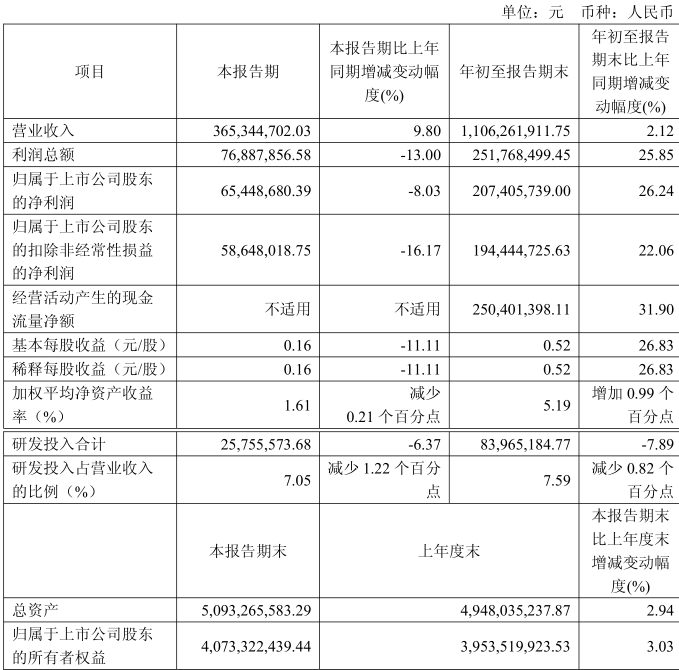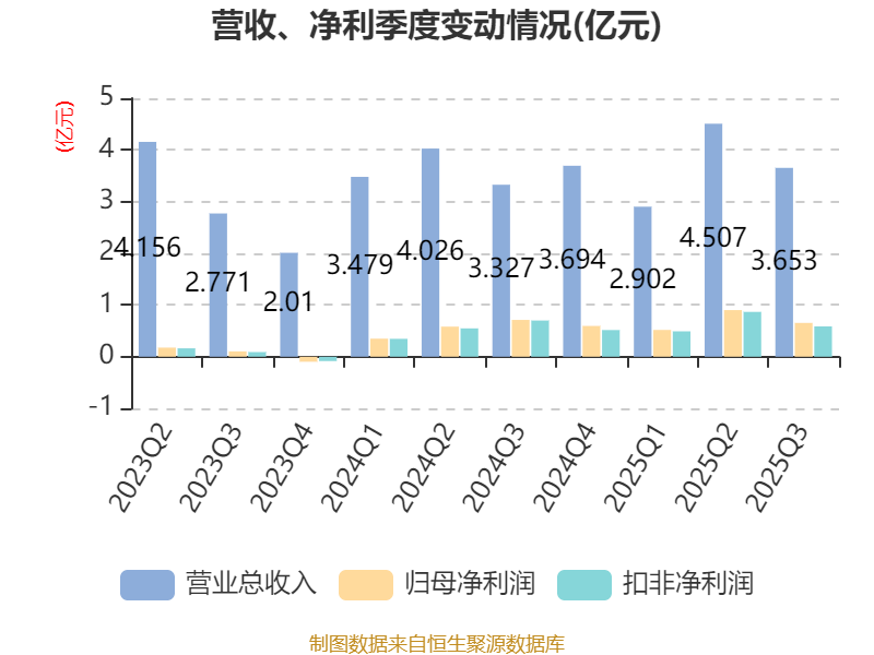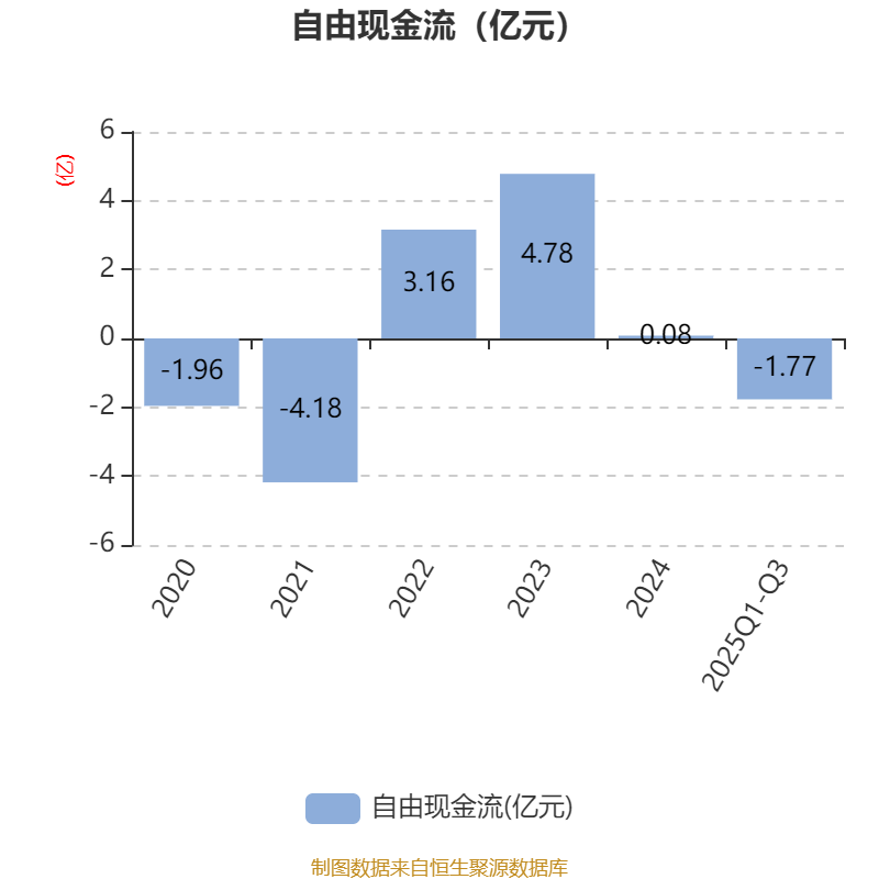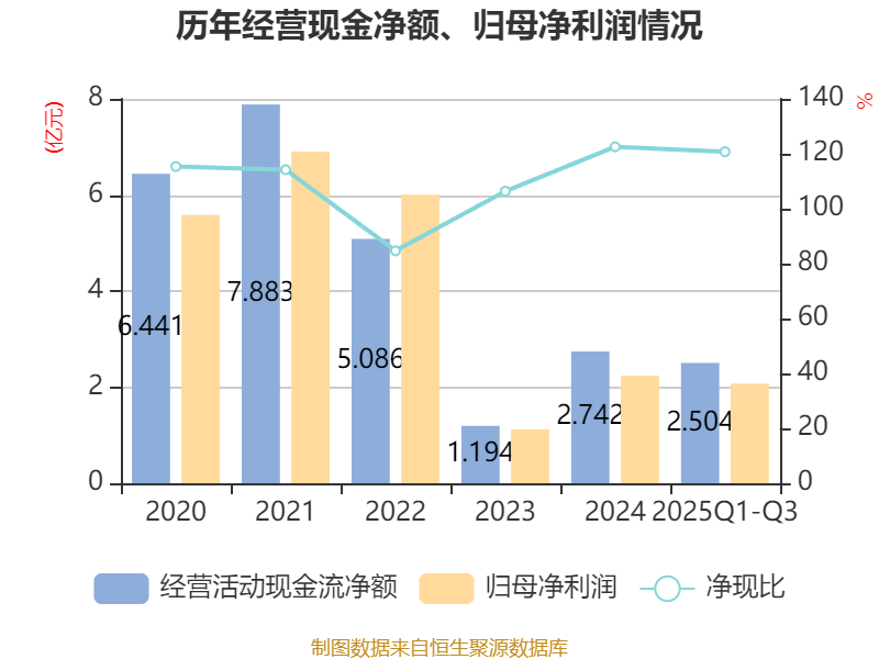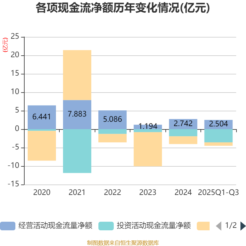 2025年前三季度,公司经营活动现金流净额为2.5亿元,同比增长31.9%;筹资活动现金流净额-9211.3万元,同比减少1314.54万元;投资活动现金流净额-3.58亿元,上年同期为-517.89万元。