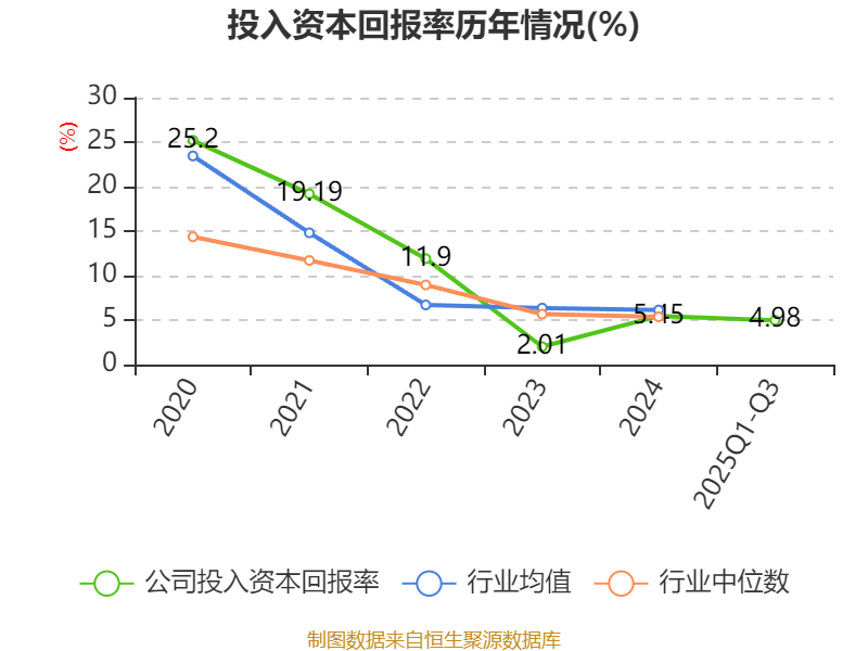 盈利能力方面, 2025年前三季度公司加权平均净资产收益率为5.19%,同比上升0.99个百分点。公司2025年前三季度投入资本回报率为4.98%,较上年同期上升1个百分点。
