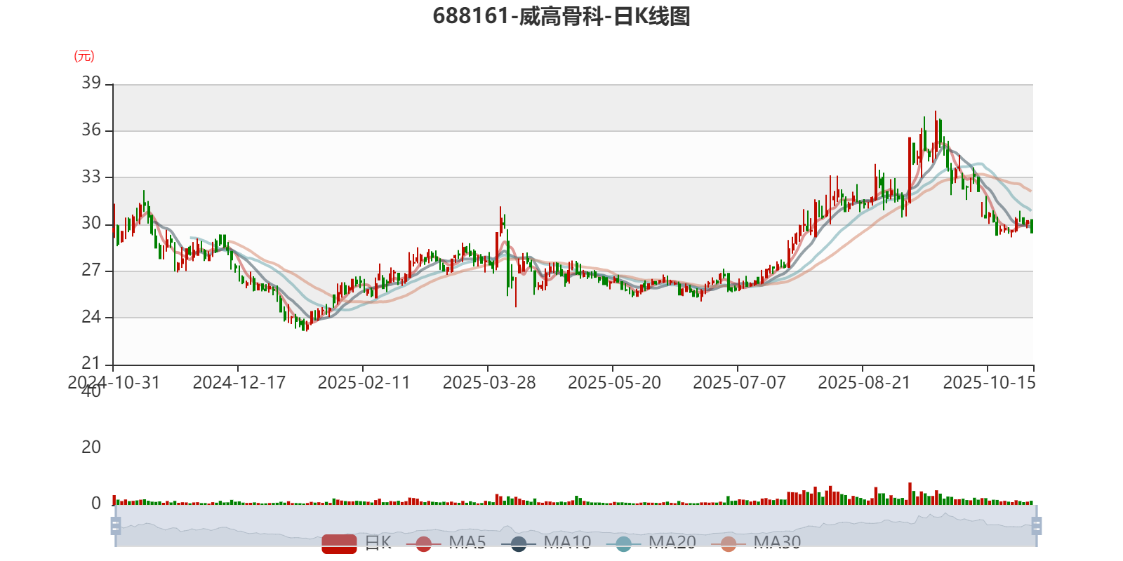 中证智能财讯威高骨科(688161)10月31日披露2025年第三季度报告。前三季度公司实现营业总收入11.06亿元,同比增长2.12%;归母净利润2.07亿元,同比增长26.24%;扣非净利润1.94亿元,同比增长22.06%;经营活动产生的现金流量净额为2.5亿元,同比增长31.90%;报告期内,威高骨科基本每股收益为0.52元,加权平均净资产收益率为5.19%。