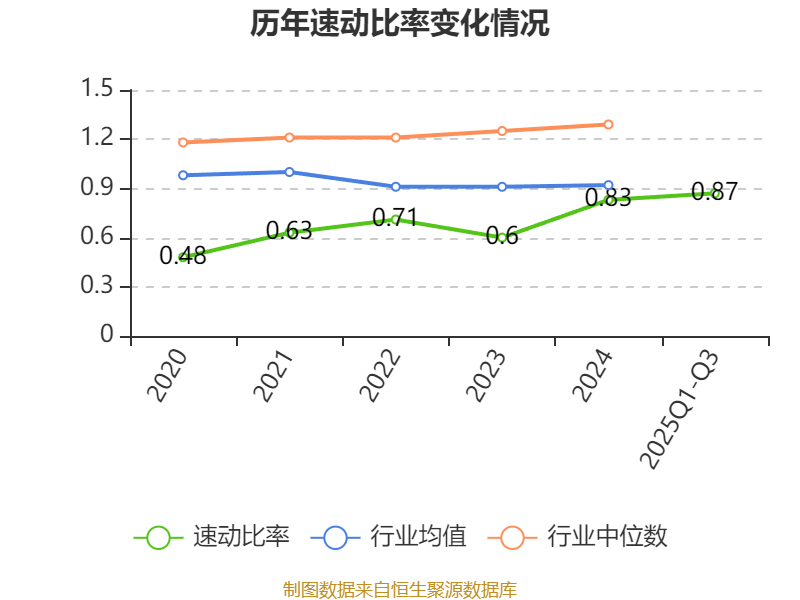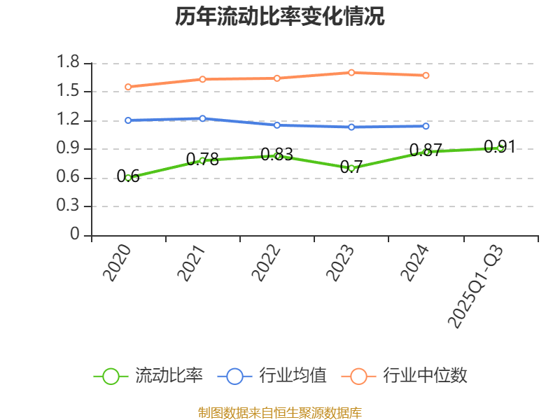 2025年前三季度,公司流动比率为0.91,速动比率为0.87。