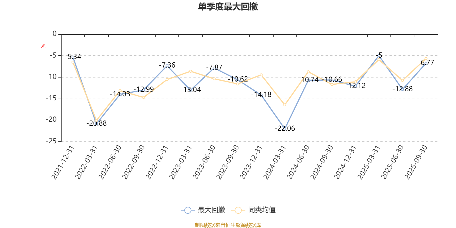 截至10月29日,基金近三年最大回撤为40.5%,同类可比基金排名363/513。单季度最大回撤出现在2024年一季度,为22.06%。