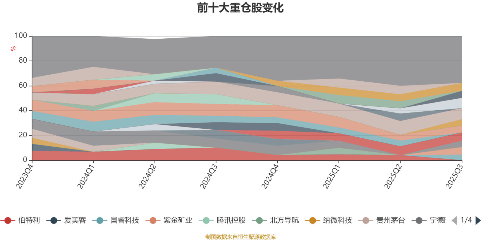 该基金持股集中度较高。截至2025年三季度末,基金十大重仓股分别是皖仪科技、中芯国际、迪威尔、乐鑫科技、紫金矿业、阿里巴巴-W、航宇科技、信达生物、宁德时代、国睿科技。